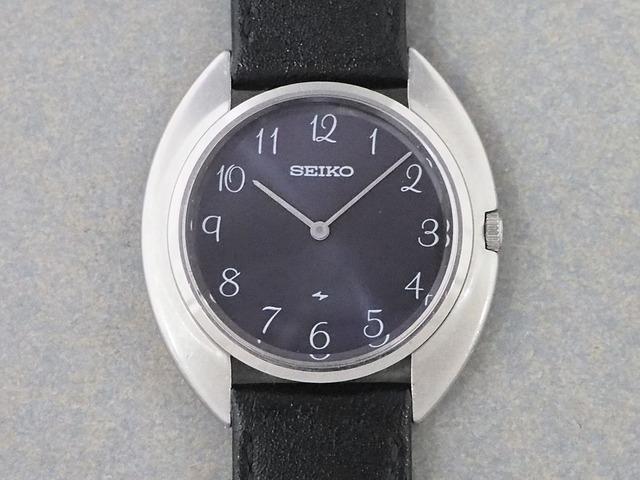 ・Movement:Cal.5606 (自動巻き ・毎時 21600振動) ・Ser/Ref:1D8429 / 5606-7190 ・Size:37mm ・Strap:18mm ブルー・カーフ(HIRSCH/Knet) ・Age:1971年 ・Condition:〇・・・ガラス交換、揺動レバー交換(金属) (◎…デッドストックまたは未使用状態、〇…使用感程度のわずかな傷や汚れなど、△…多少の目立った傷などがあるが機能に影響がない、×…不具合あり) 在庫店舗:L o'clock(豪徳寺)https://shop.loclock.jp/p/00006 ◆自動巻ムーブメントCal.56系を搭載した”SEIKO LORD MATIC(ロードマチック)”です。 当時、腕時計には付加機能が求められる一方で、それに伴う厚みや大型化が懸念されていましたが、このロードマチックに搭載された「56系」と呼ばれる自動巻ムーブメントは、機能・性能・薄型化を十分に満たした機械です。 高いニーズのあった日付・曜日には、当時世界初となる早修正機能を備え、国際化の波に合わせて和文字・英文字を選択できる曜日表示を擁しています。 印象的な文字盤は、サンレイ仕上げによる濃淡が生まれるブルーが美しく、高さのあるアップライトインデックスは中程から内側に向かって傾斜し、立体感を生み出しています。さらに内周に配置されたミニッツマーカーに合わせた長さの秒針とバータイプの長短針が組み合わさり、デザイン性の高い洒落た雰囲気を感じさせるフェイスです。 ベルトは時計に合わせて同色ステッチのHIRSCH社製Kentのブルーを取り付けました。 ◆ビンテージウオッチは全てオーバーホール及び部品交換等のメンテナンス済み、12ヶ月の作動保証付です。精度はテスター値で±30秒/日以内に調整しています。 ※使用状況等により多少の誤差が生じることがあります。 古物商許可:東京都公安委員会 第303261606122号 株式会社エルオクロック <1212>