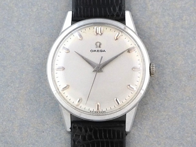 ・Movement:Cal.285 手(巻き ・毎時 18000振動) ・Ser/Ref:17522575 / 14732-1 SC ・Size:34.5mm ・Strap:18mm リザード・カーフ(HIRSCH/Lizard) ・Age:1960年 ・Condition:△・・・文字盤多少のダメージ、機止めネジ×1代用部品、風防交換 (◎…デッドストックまたは未使用状態、〇…使用感程度のわずかな傷や汚れなど、△…多少の目立った傷などがあるが機能に影響がない、×…不具合あり) 在庫店舗:L o'clock"delve"(松原)https://shop.loclock.jp/p/00006 ◆手巻きムーブメント「30mmキャリバー」を搭載する、1960年代製の"OMEGA(オメガ)"です。 ブランドロゴのみのすっきりとした文字盤によって、ダイアモンドカットが施されたインデックスの存在感が引き立つフェイスデザインです。12時位置の外周部分には経年によるわずかなダメージが見られますが、雰囲気を損なうほどではなく、シャープなドーフィン針の先端が丁寧にカーブを描く様子は、この時代のオメガらしさを感じさせます。 ケースは、気になる大きなキズのないコンディションで、文字盤とあわせて余計な装飾を省いたシンプルで上品な佇まいが特徴です。 搭載するCal.285は、手巻きの名作と評価される「30mmキャリバー」のひとつで、1958年に登場したムーブメントです。オメガムーブメントの特徴ともいえる、美しい赤金メッキが施された機械です。 「30mmキャリバー」と呼ばれるオメガの手巻きムーブメントは、1940年頃から1960年代中盤まで製造され、当時の天文台コンクールで数々の優秀な成績を収めました。量産機とは思えない精度と機能美を持ち、オメガファンの間でも評価の高いムーブメントのひとつです。 ベルトは時計にあわせてエレガントさが際立つ、HIRSCH社製Lizardのブラックを取り付けました。 ◆ビンテージウオッチは全てオーバーホール及び部品交換等のメンテナンス済み、12ヶ月の作動保証付です。精度はテスター値で±30秒/日以内に調整しています。 ※使用状況等により多少の誤差が生じることがあります。 古物商許可:東京都公安委員会 第303261606122号 株式会社エルオクロック <2301>