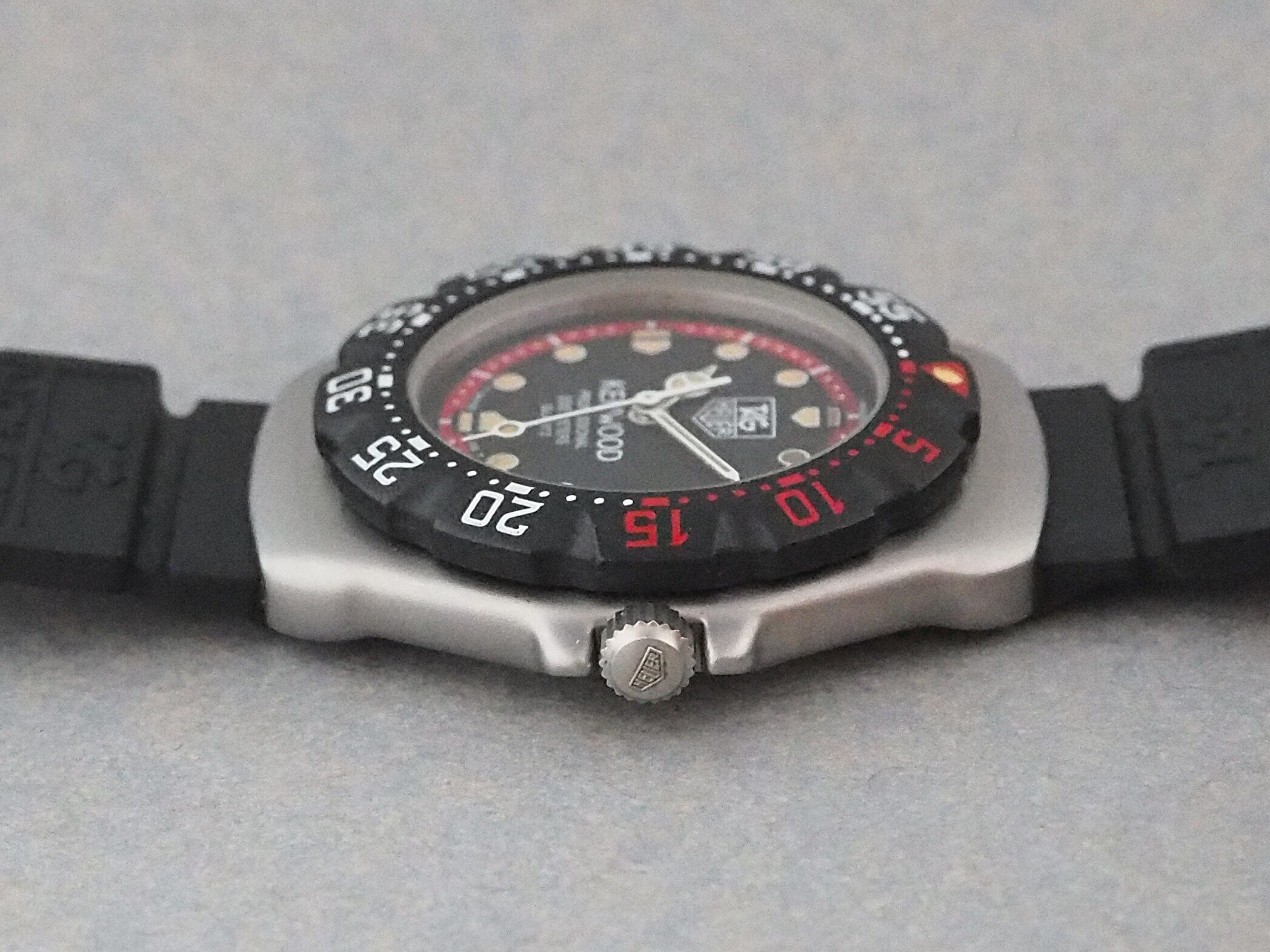 1983年、タグ・ホイヤーは、時計界における新しいパラダイムの登場に応え、画期的なコレクション「タグ・ホイヤーフォーミュラ1」を発表しました。「タグ・ホイヤーフォーミュラ1」は、鮮やかなカラー、プラスチック製ケース、シンプルなクオーツムーブメント、そして楽しいパッケージ、と同じスタイルが提供されました。ダイバーズウォッチの伝統に忠実に従い、「タグ・ホイヤーフォーミュラ1」は、防水性200mの分単位で刻まれたベゼルを備えていました。(タグホイヤーHPより)