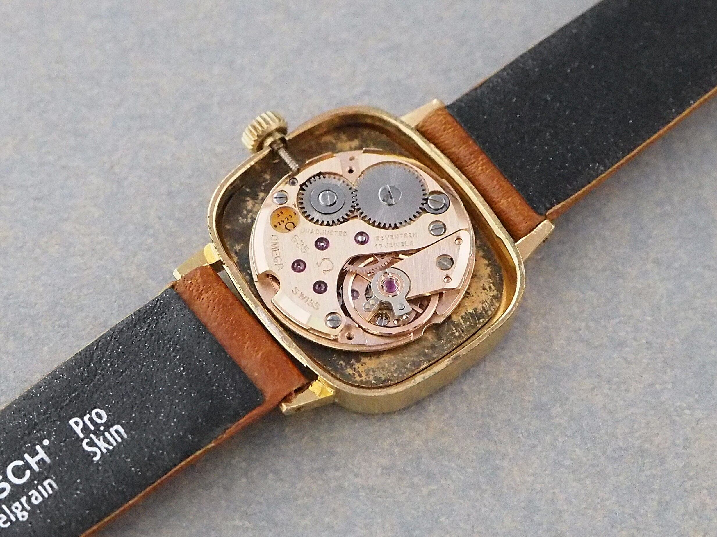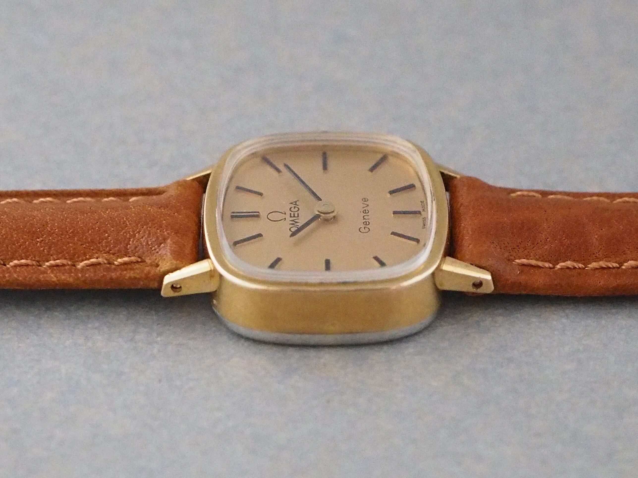 人気の高い特徴的なデザインが魅力的な1970年代製造のオメガ。横幅を大きくとったスクエア型は、当時の小ぶりなサイズとしては大きく存在感がありますが、女性の腕周りにもすっきり収まり、角の丸みの柔らかさに可愛らしさが感じられます。