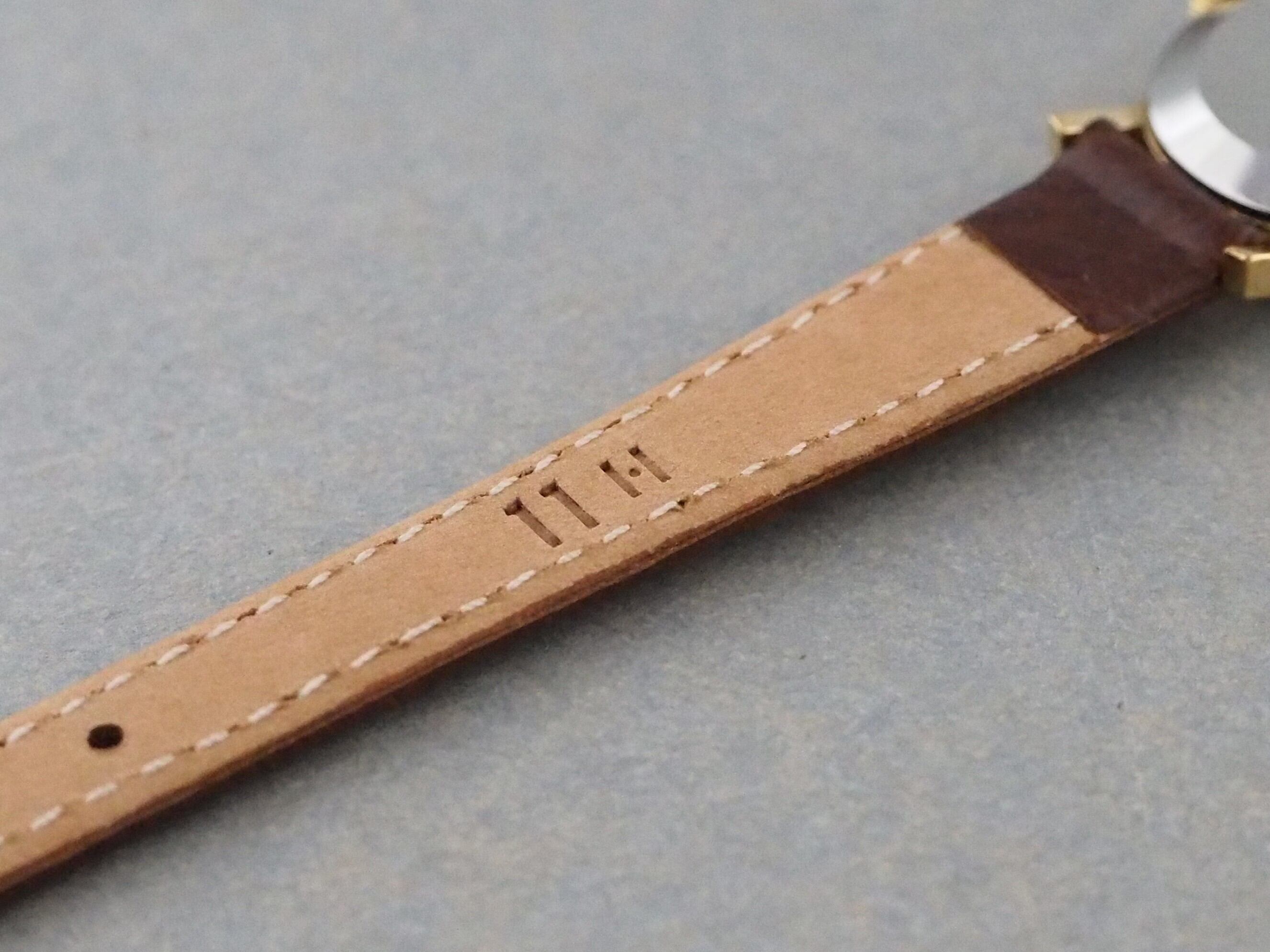 ベルトは、アートピースのような佇まいの時計に合わせて、HIRSCH社製Ostrichgrainのブラウンを組み合わせました。