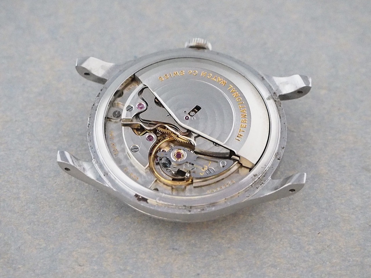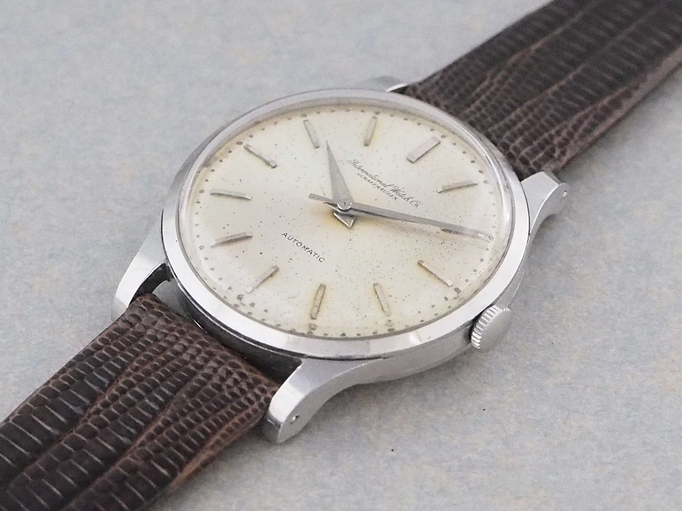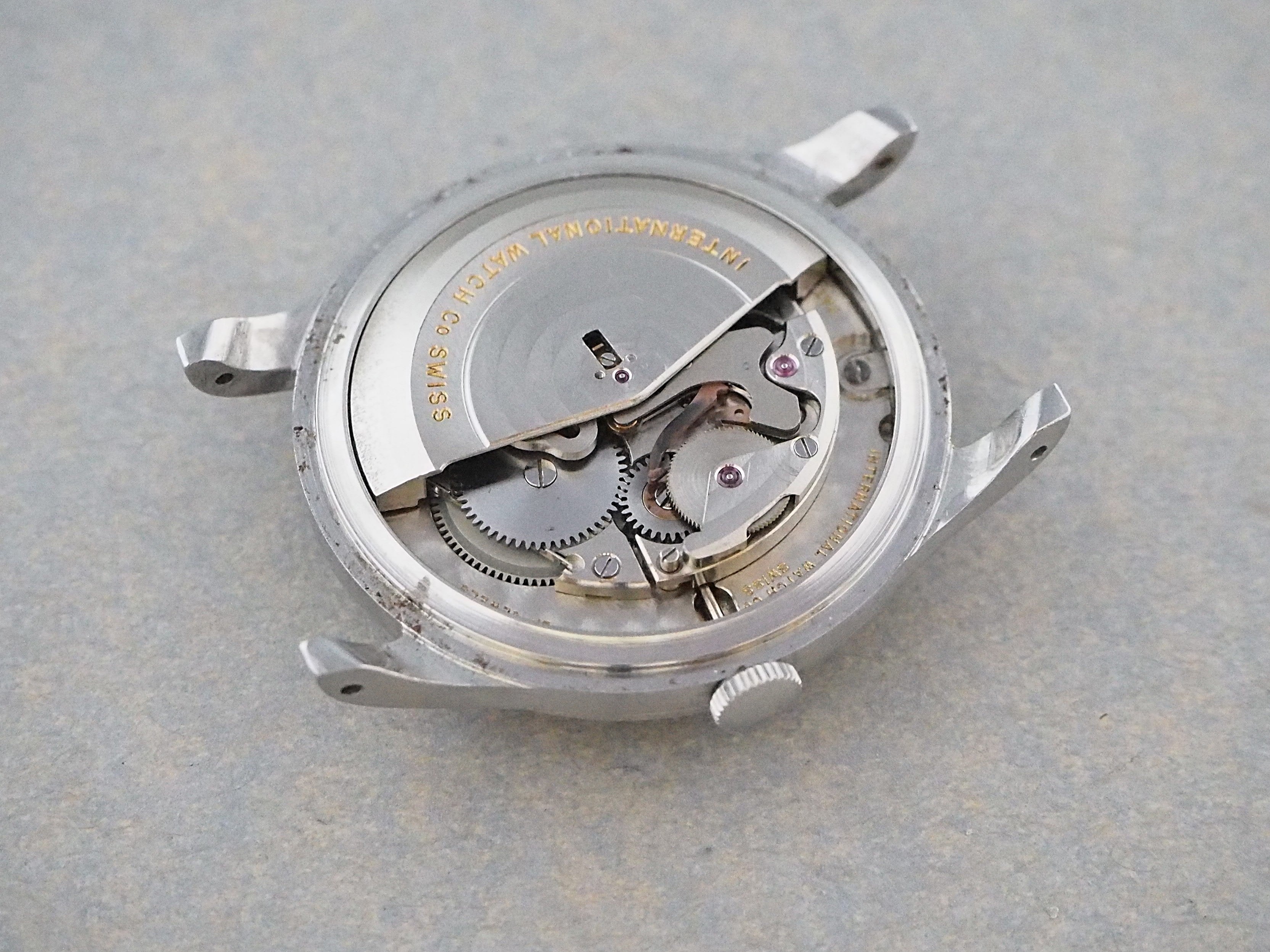 上品なカーブを描くラグが印象的なケースは、この年代の「オールドインター」特有のスタイルで、裏蓋との接触面に多少のダメージがありますが実用には問題はなく、35mm径のケースは大きすぎず小さすぎない程よいサイズ感で、腕元に自然に馴染みます。