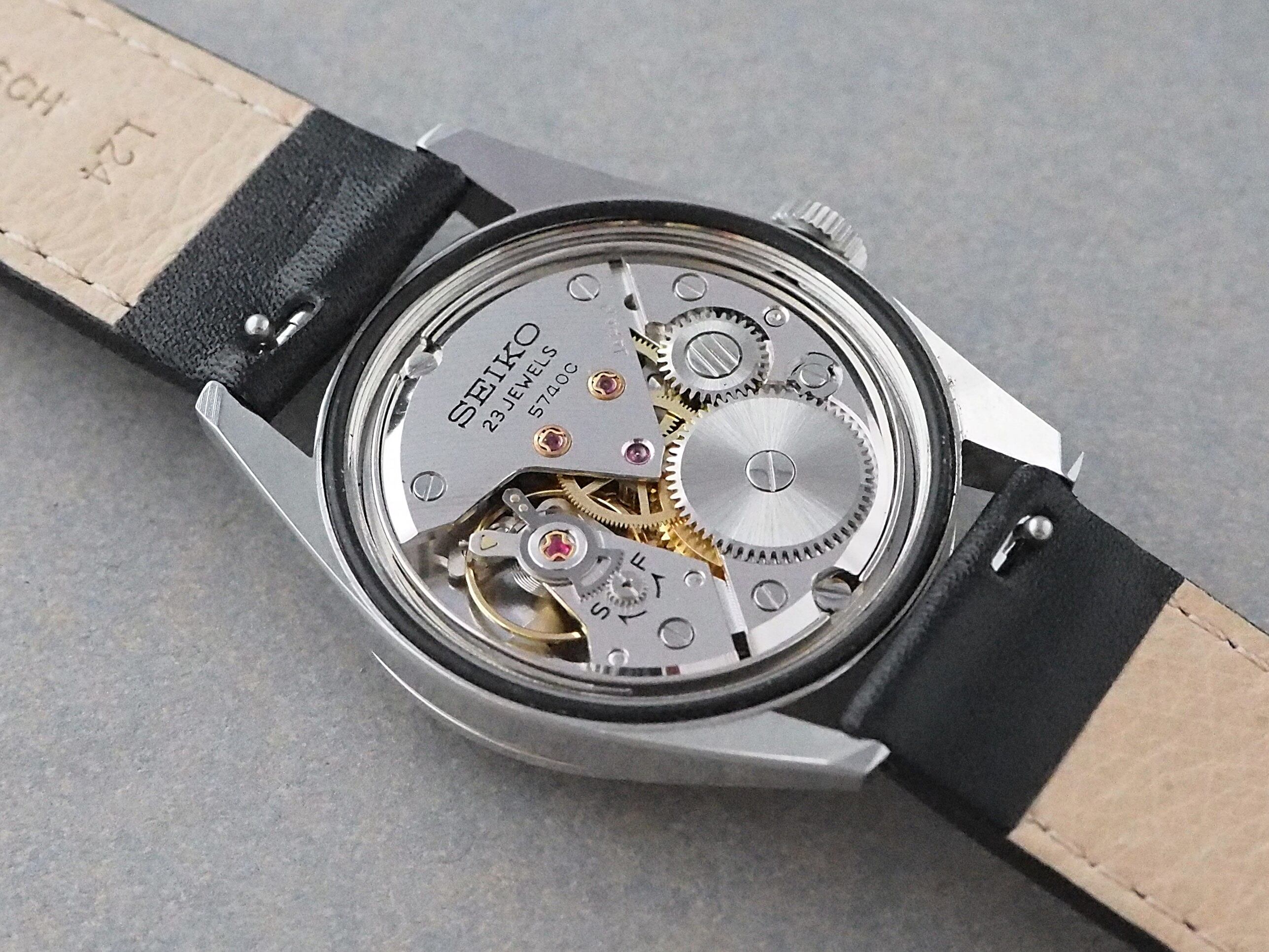 文字盤に表記されている通り振動数は毎時36000振動のハイビートです。1967年から製造されたこのモデルが国産腕時計初の10振動(毎時36000振動)の製品で、高振動の作動に耐えられるよう堅固に設計された美しいムーブメントを搭載しています。