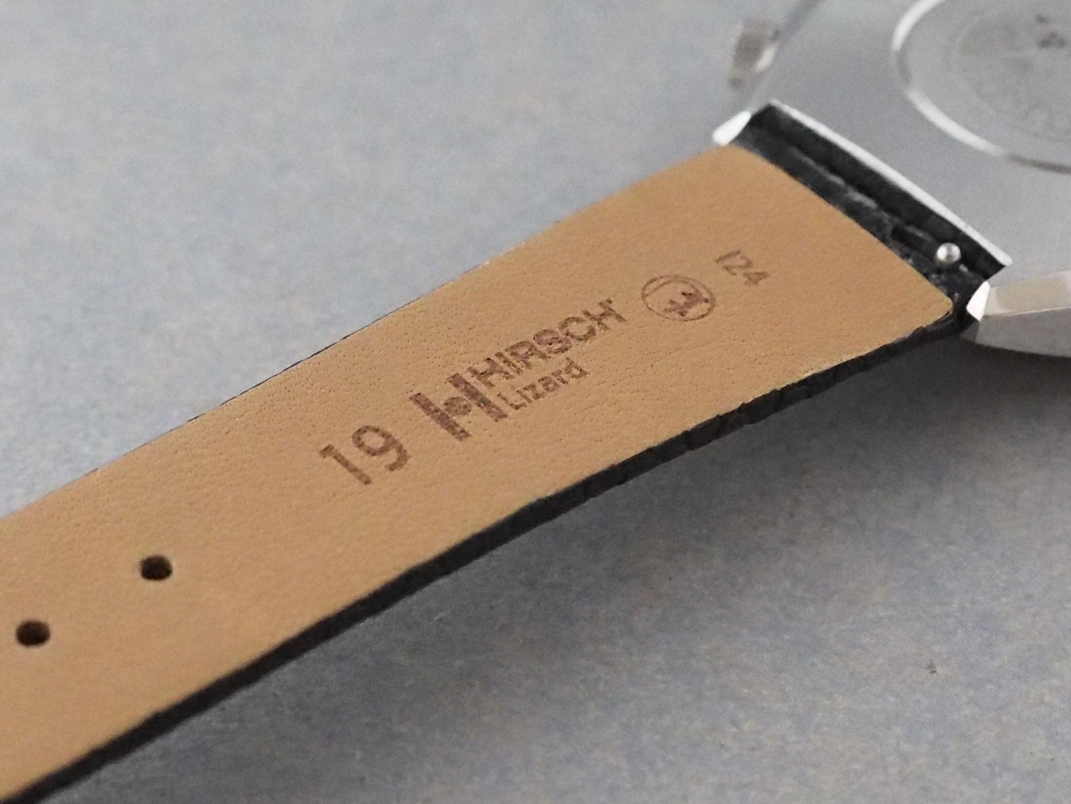 時計の高級感にあわせて、エレガントさのあるHIRSCH社製Lizardのブラックを取り付けました。