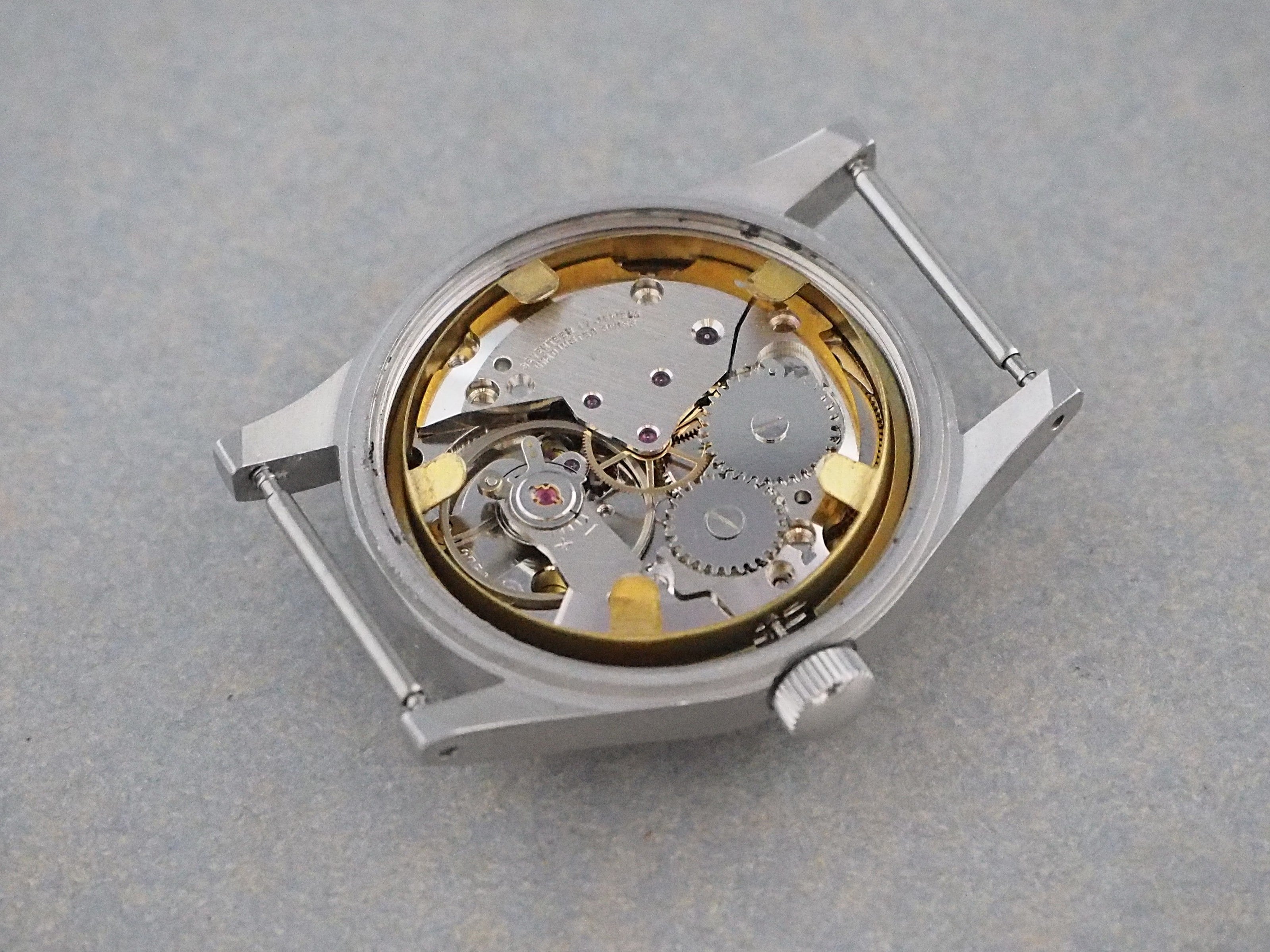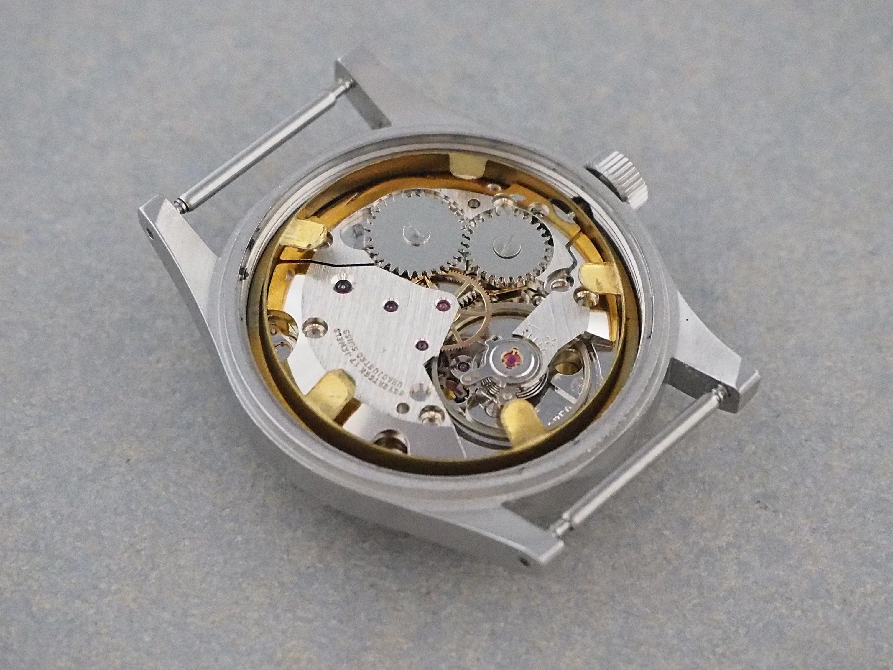 現在まで様々なバリエーションが存在しますが、このモデルは手巻き式でケースサイズはミルスペック仕様と同じ33mm、ラグ幅17.4mmの初期型の特徴を備えています。