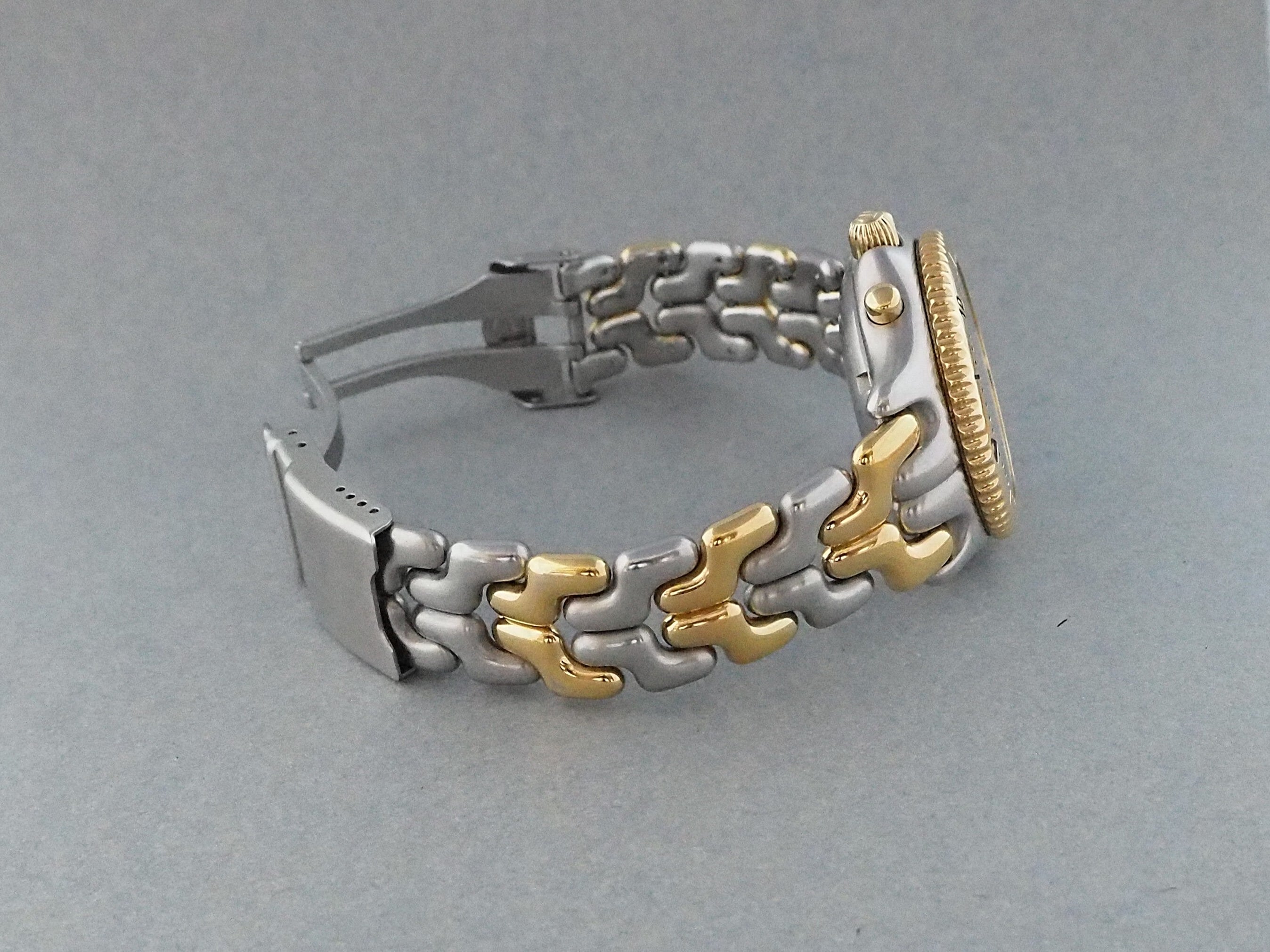 このモデルでは、そのブレスレットとケースにマット仕上げのステンレスと光沢のあるゴールドカラーを組み合わせ、スポーツとエレガンス、その名のとおり二つの要素が融合した印象をより際立たせています。