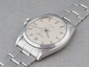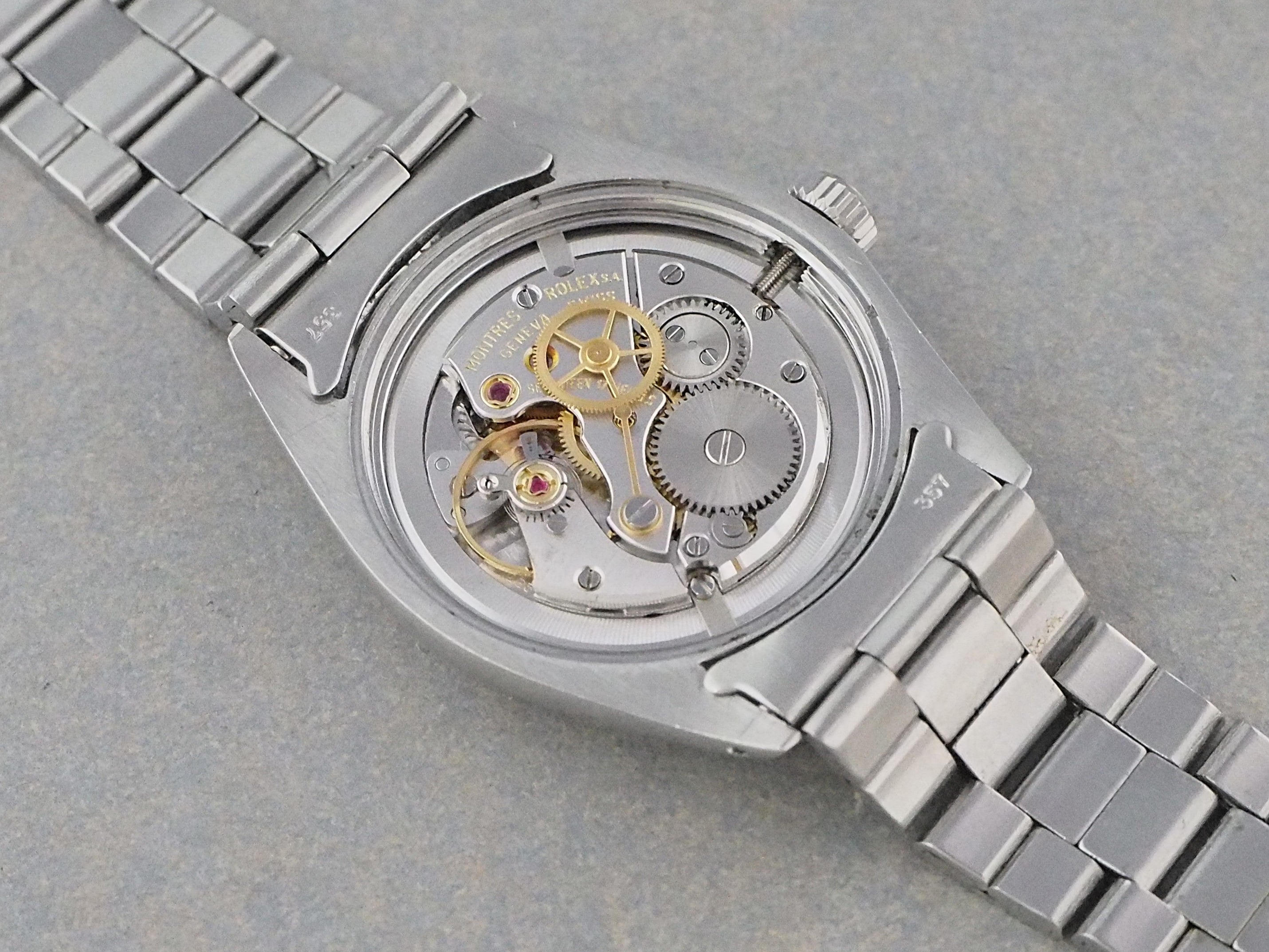自動巻きモデルに比べ薄さを感じさせるオイスターケースは、腕元にすっきり収まる34mm径の小ぶりなサイズ感が魅力で、機能性を追求しながらもスマートな高級感を漂わせるそのデザインには、ロレックス特有の風格が感じられます。搭載するムーブメントはクラシックな構造の出車式センターセコンドの手巻きムーブメントで、高いメンテナンス性と安定した精度を誇るCal.1225です。