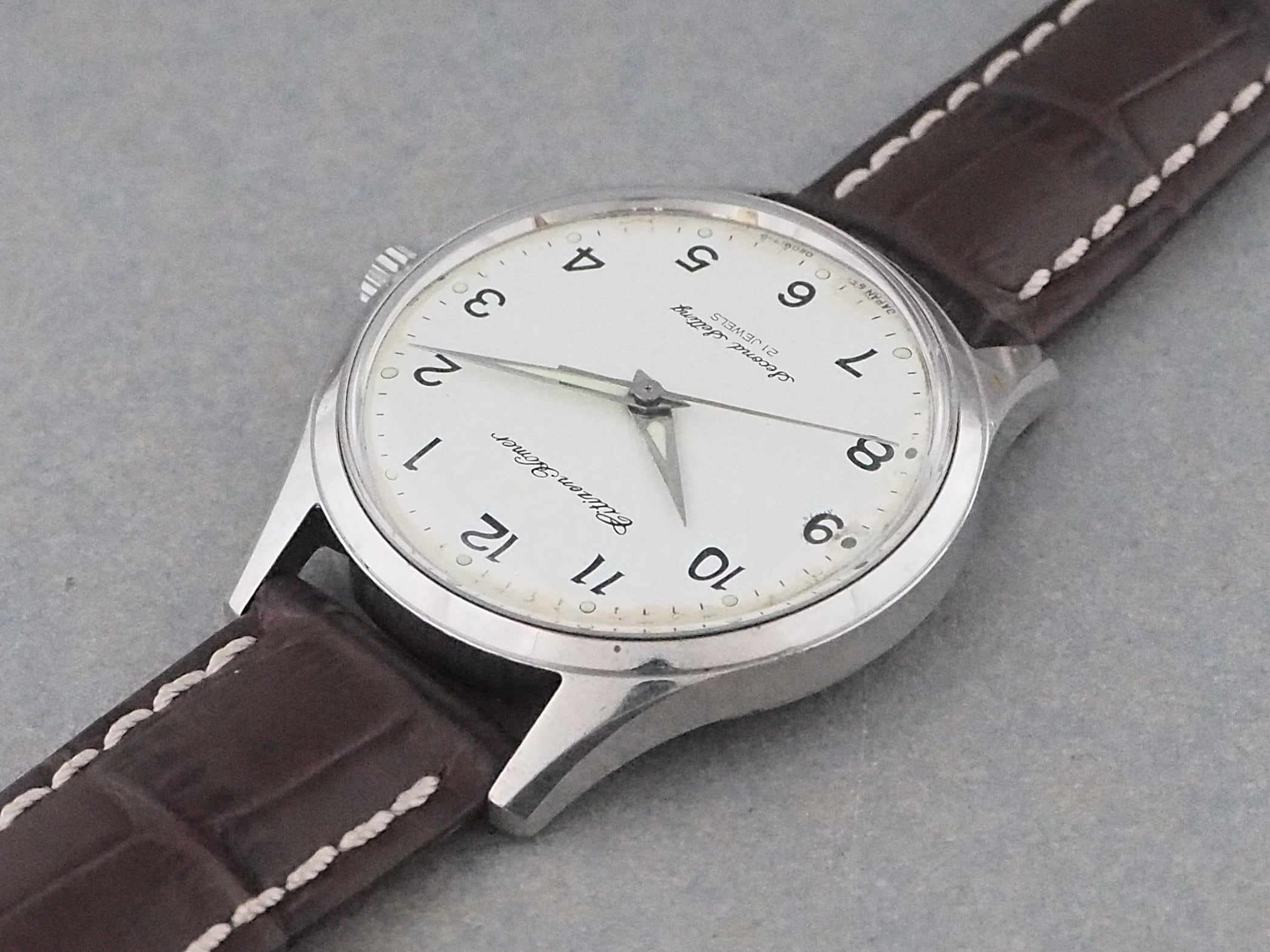 文字盤に少し変色がみられるものの全体の雰囲気を損なう程ではなく、逆にビンテージらしい落ち着いた魅力を楽しめます。