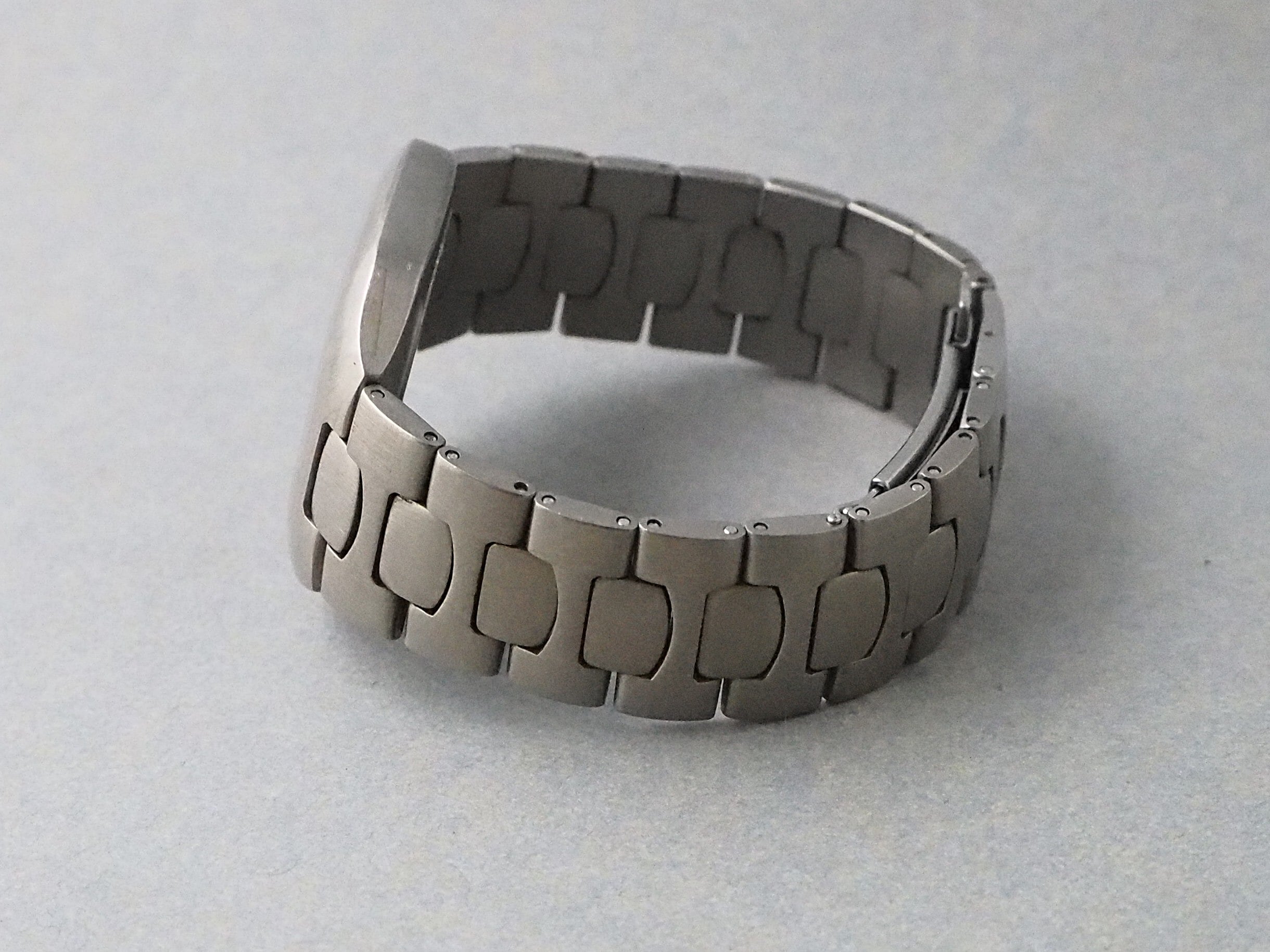 ケースと同様のチタン製のブレスレットは、ステンレス製のものに比べ軽快な装着感のため、長時間の着用でも気にならず日常使いにも快適です。
