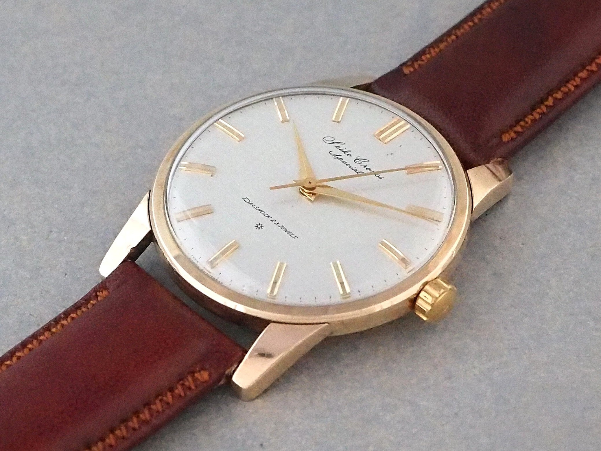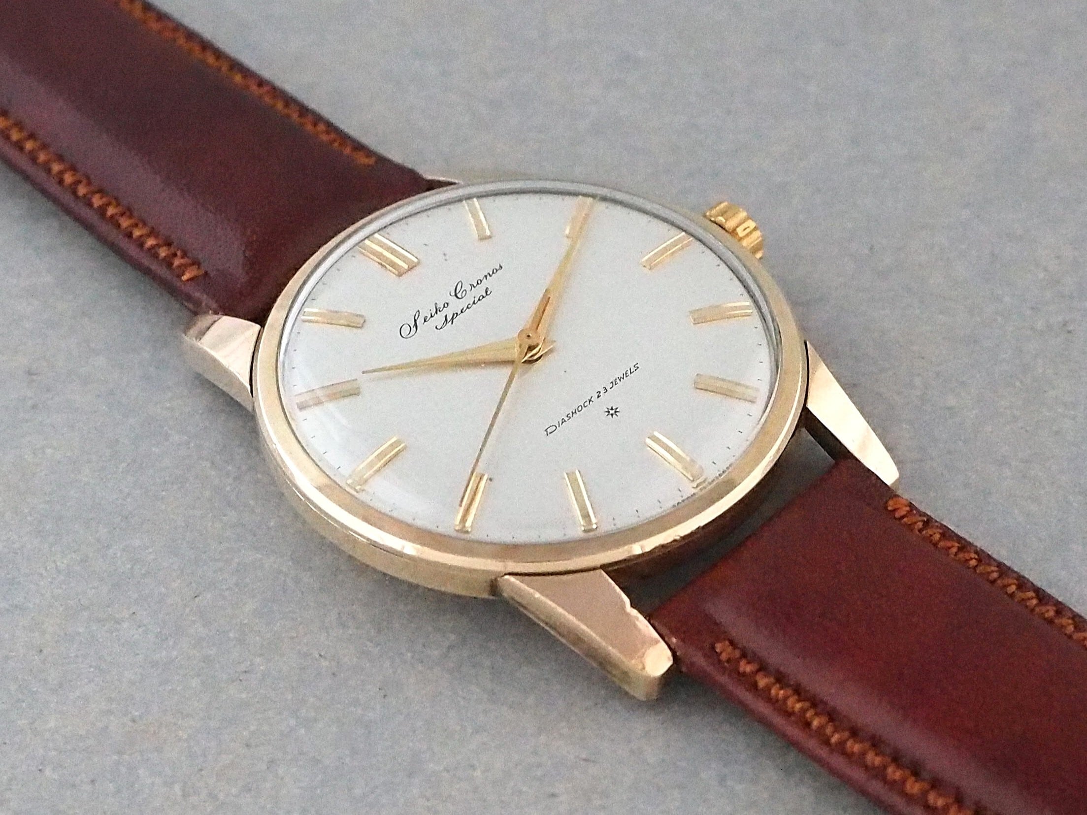 このクロノススペシャルは諏訪工場から発売された「クラウンスペシャル」の対抗機として発売され、高級機「キングセイコー」と同等といっても過言ではないモデルです。
