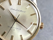 14K金張りのケースは、初期型に比べ一回り大きなケースサイズが魅力的で、軸受けに23石を使用した高級仕様のムーブメントを搭載しています。60年代の製品とは思えないほど安定した精度を保っており、現在でも十分に普段使いできます。