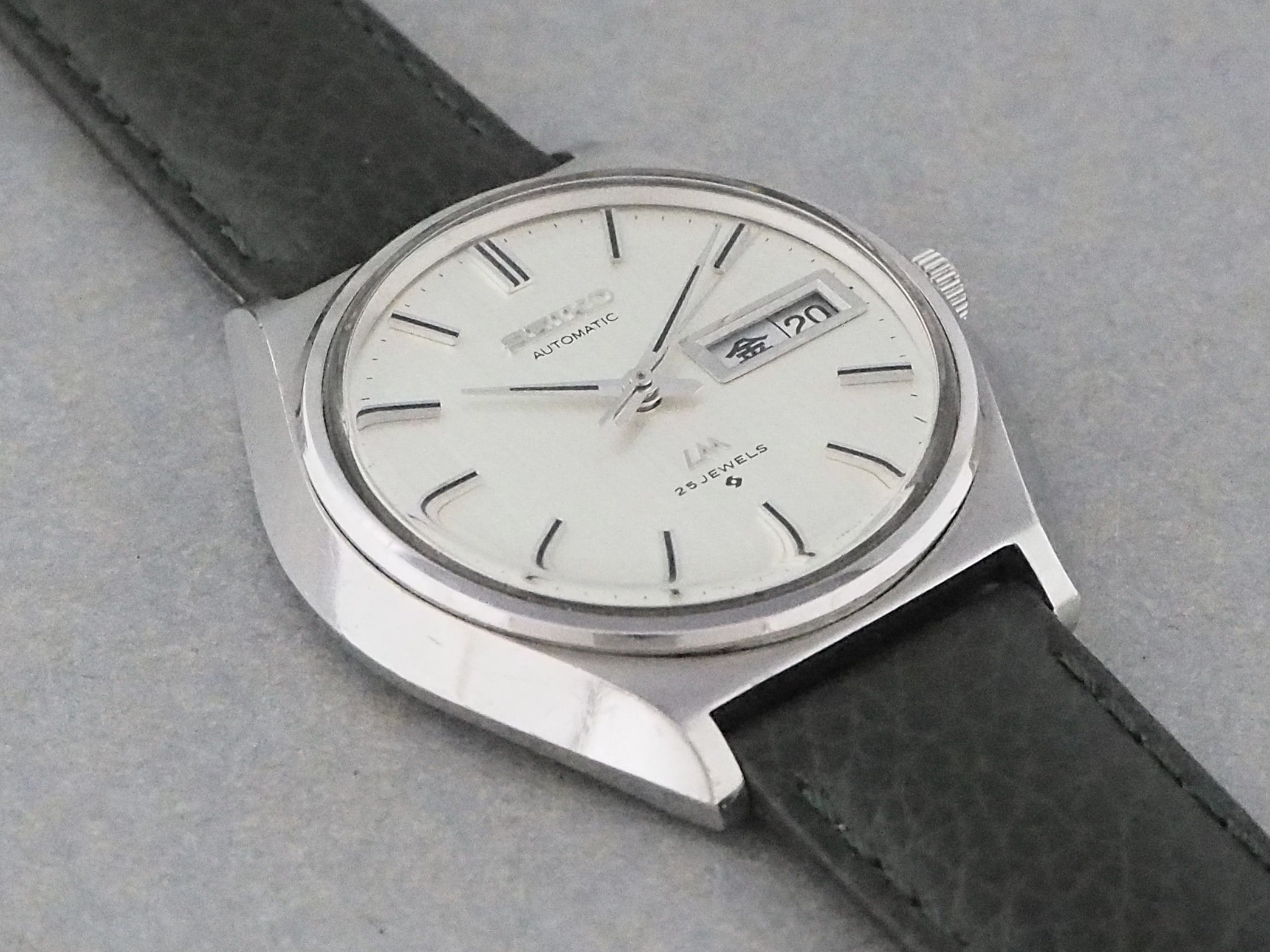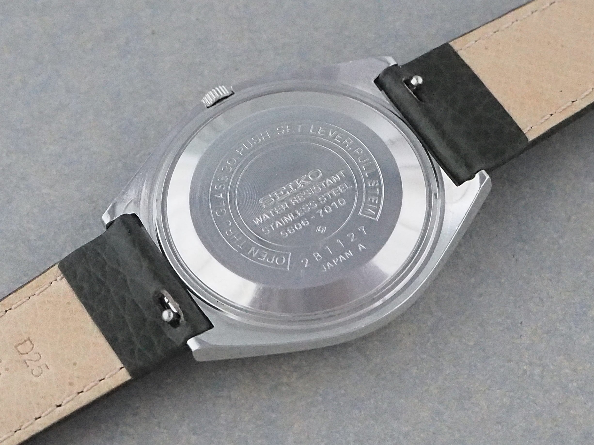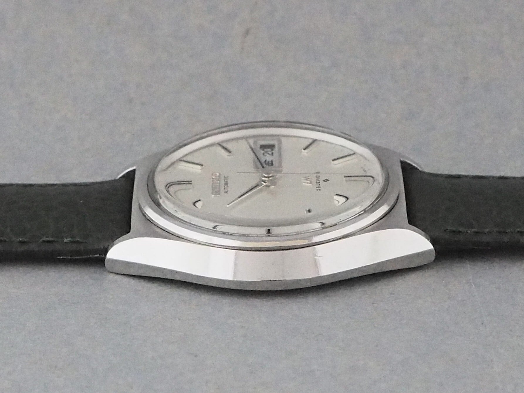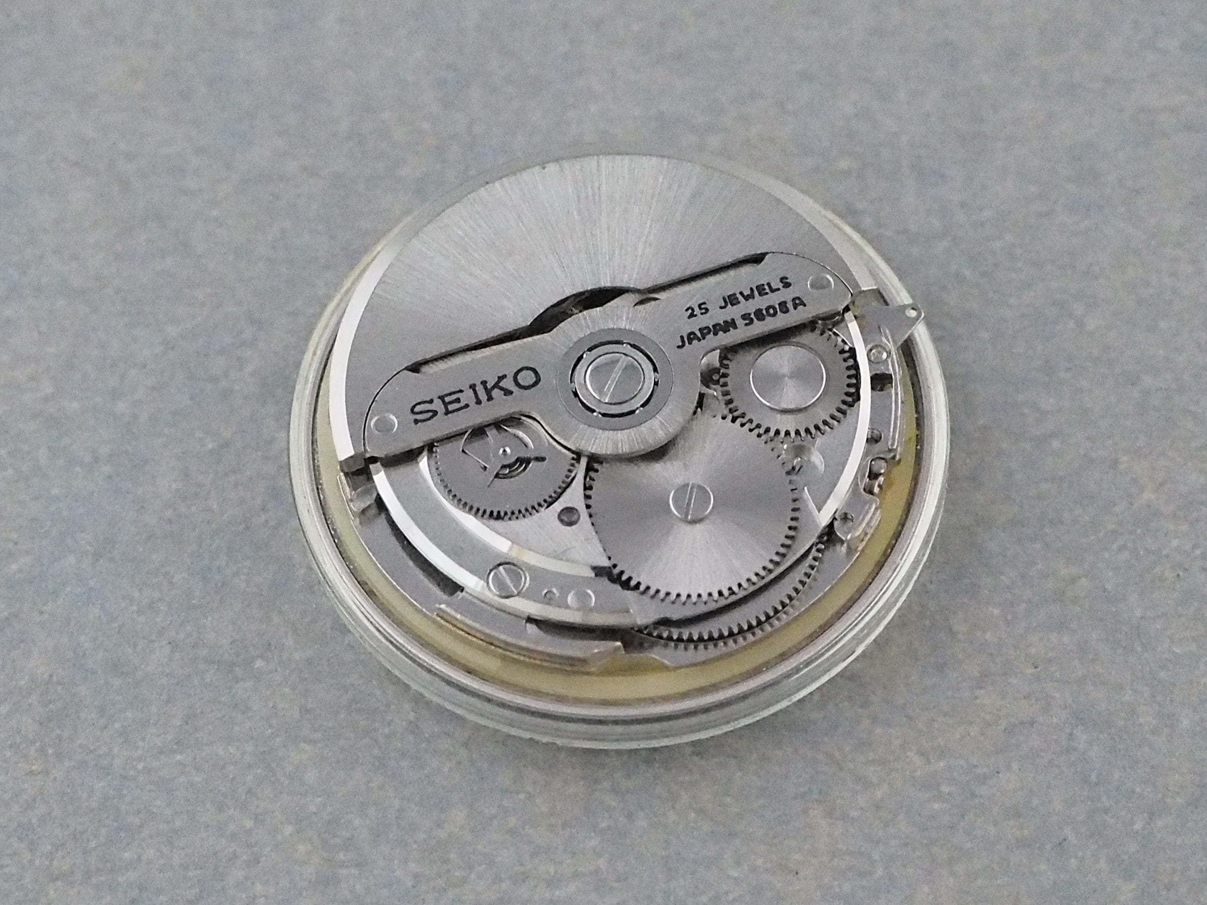 搭載された56系と呼ばれる自動巻ムーブメントは、機能・性能・薄型化を十分に満たした機械で、同設計のムーブメントがグランドセイコー、キングセイコーにも搭載されています。56系で不具合の発生しやすい日付曜日の早送りパーツも金属製に交換しており、破損のリスクが少なく安心です。