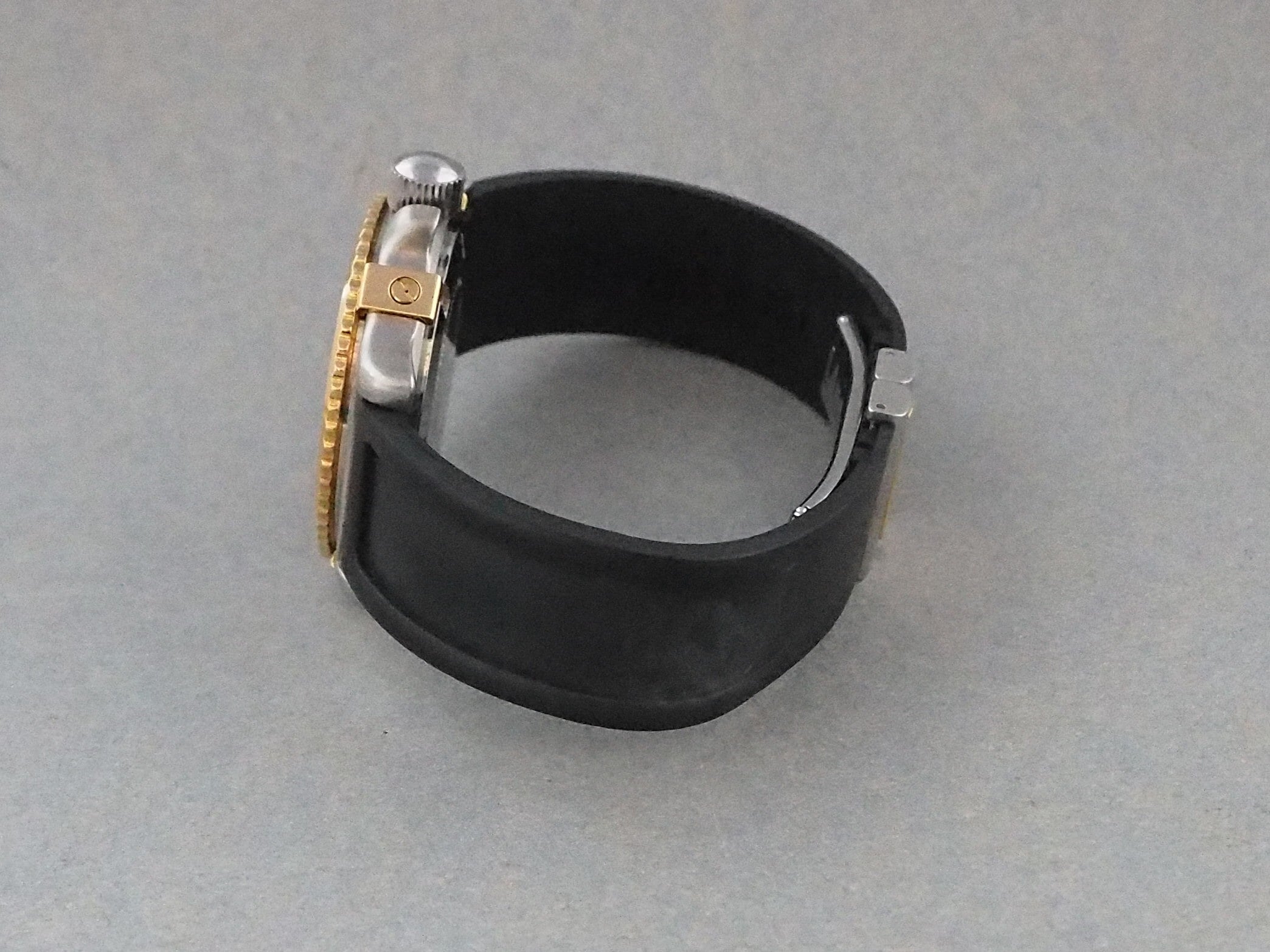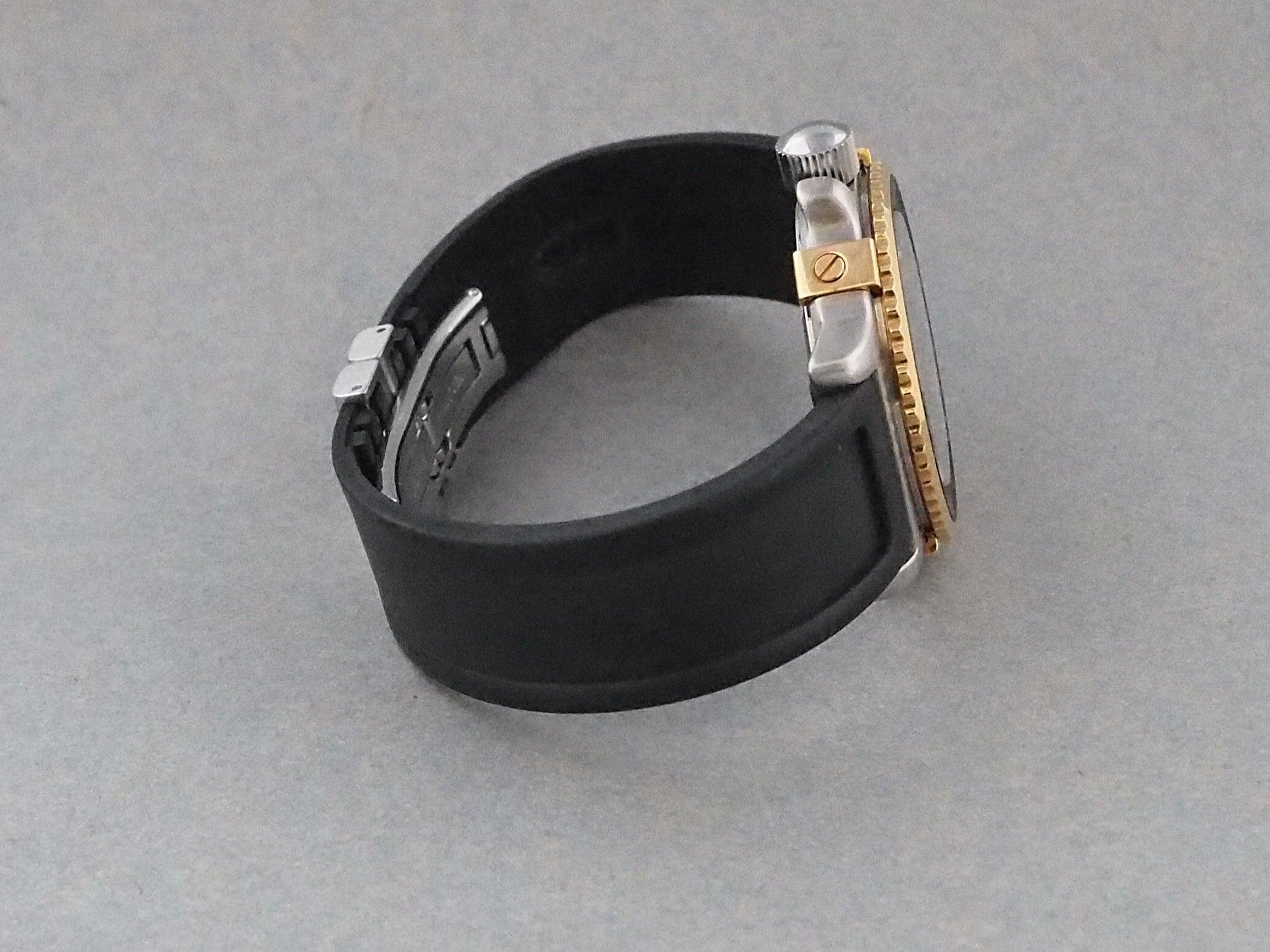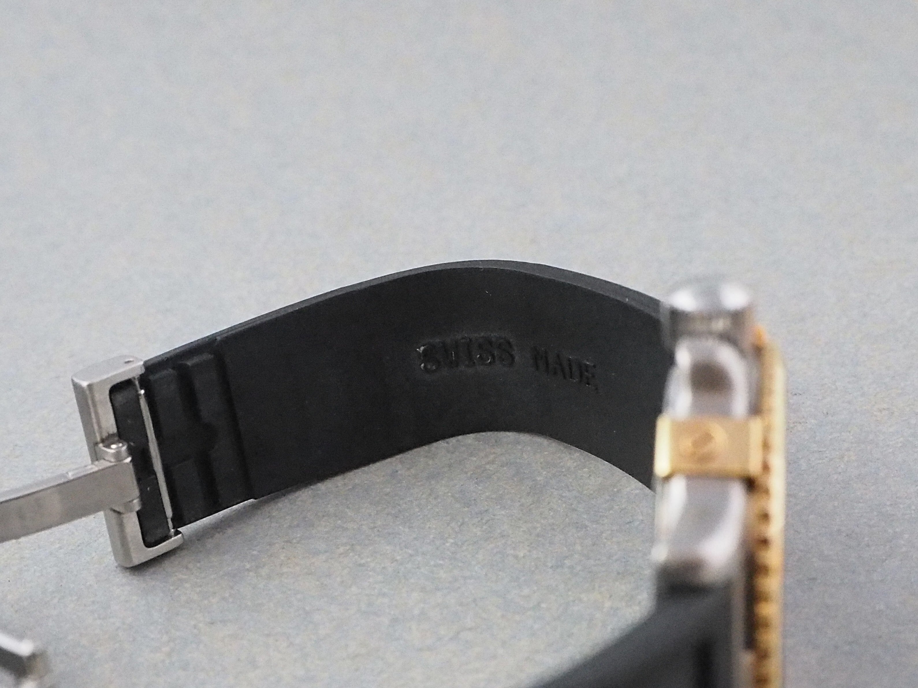 ベルトは留め具などにブランド名が刻印されたオリジナルラバーベルトが付属します。6時側の一部に経年による多少の硬化が見られるため、HIRSCH へのお取り替えのご相談も承ります。