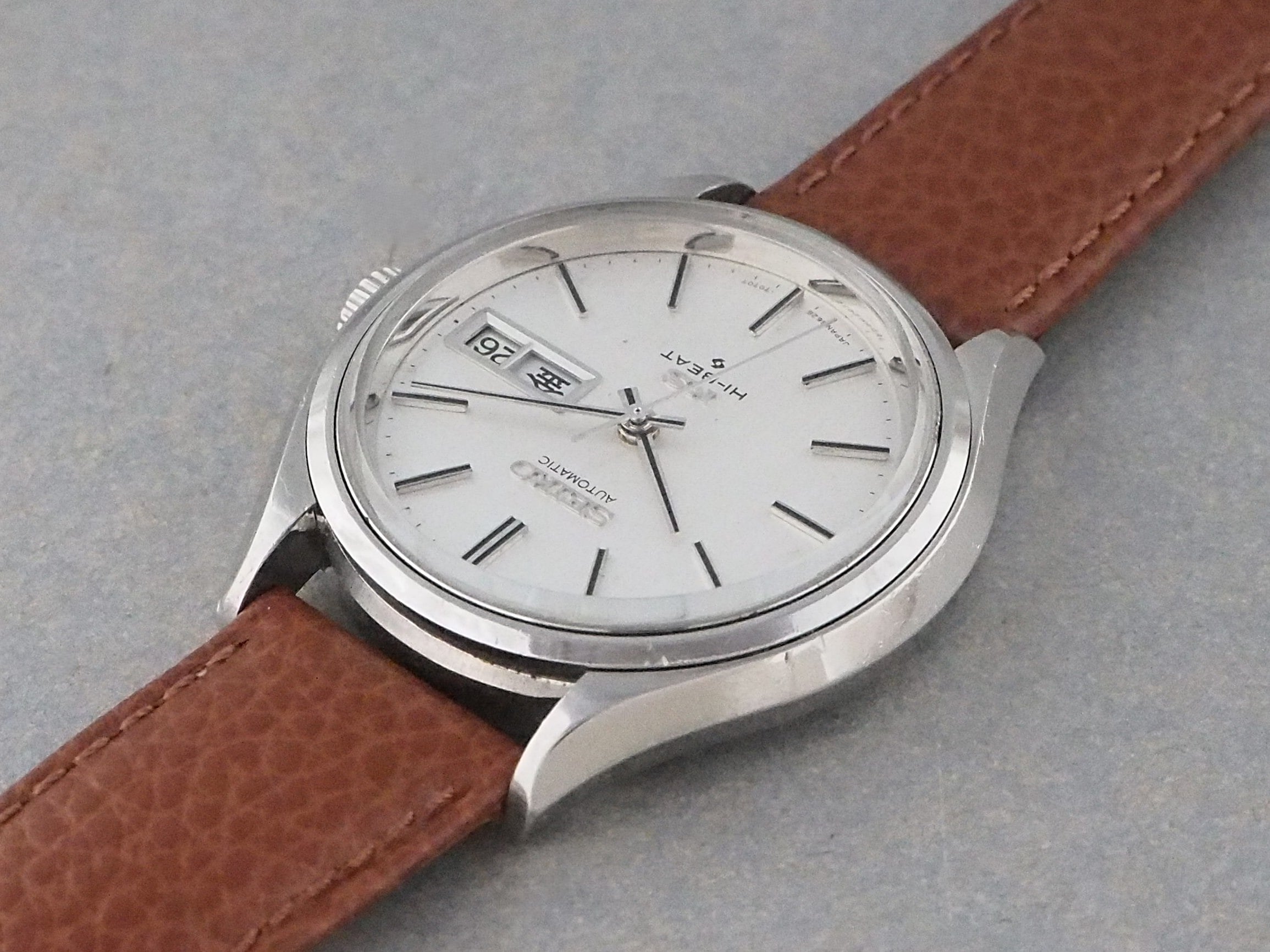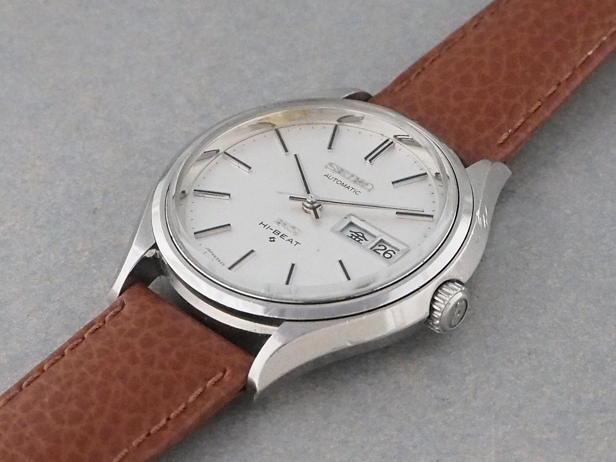 28,800の振動数を持つCal.5626は、薄型設計と高精度を兼ね備え、1960年代後半から1970年代にかけてセイコーの主力機のひとつで、この56系ムーブメントを搭載したキングセイコーが諏訪工場製初となったモデルでもあります。曜日表示は日英表記が選べ、文字色は平日は黒、土曜日が青、日曜日が赤となっています。週末は文字盤に差し色が入るのも、普段使いの楽しみのひとつになります。