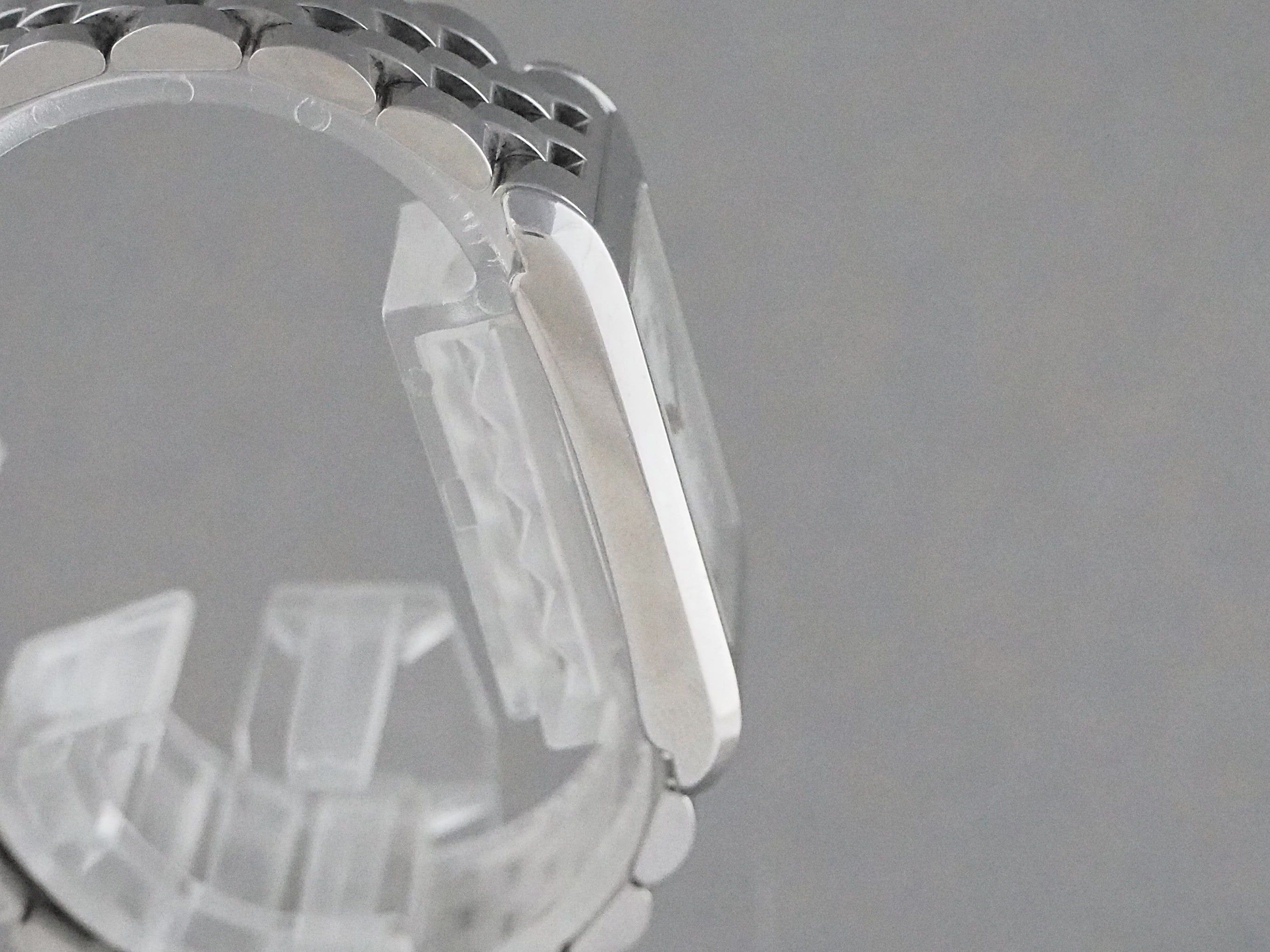 『クラシック』シリーズは透明感のあるエナメル調の文字盤が特徴的で、ケース幅20mmの程よいサイズでぴったりと腕元に収まります。インデックスの白抜きのアラビア数字はさらっと軽やかな印象で、鏡面仕上げのケースとともにティファニーらしい上品さを感じさせます。