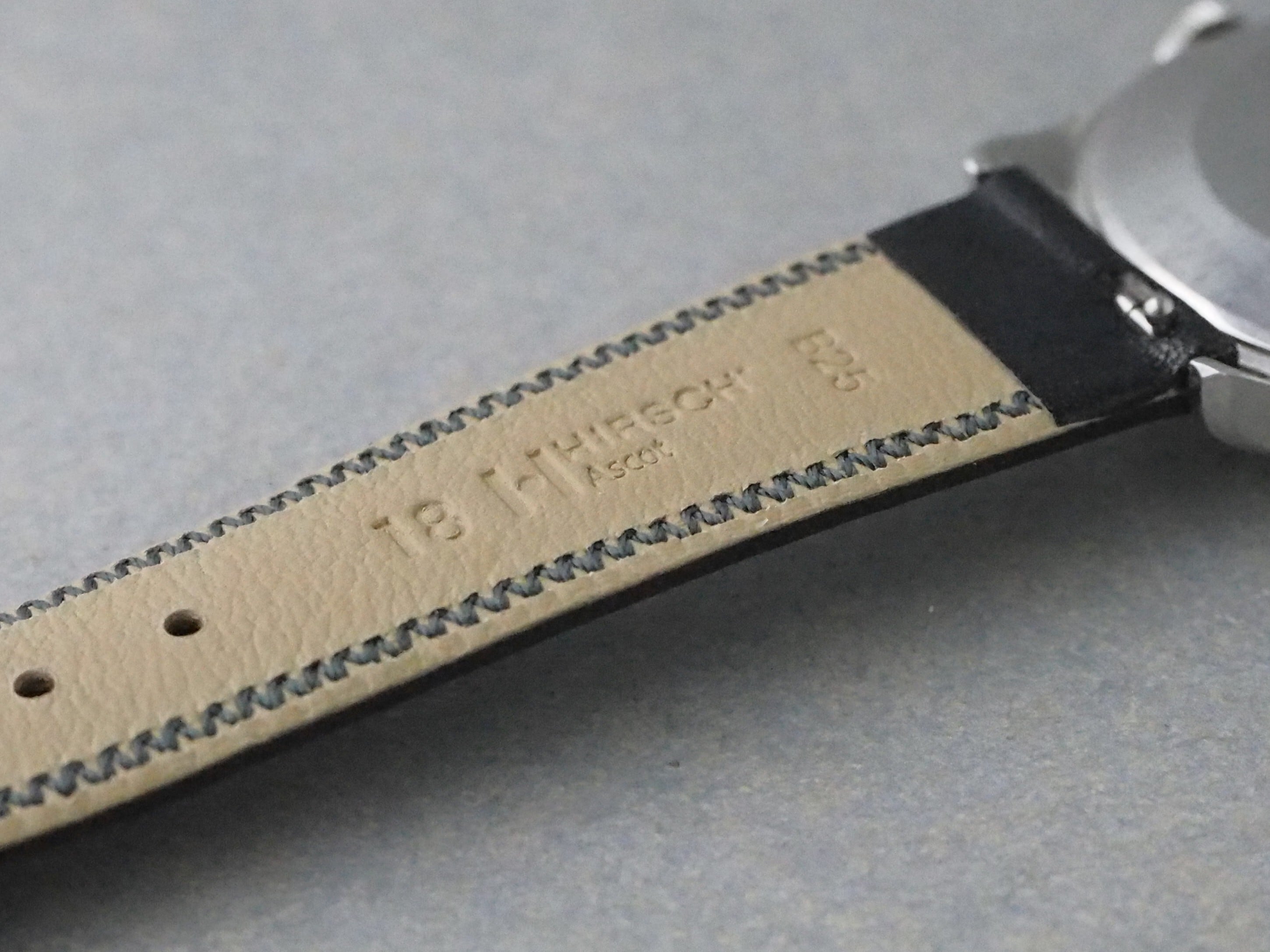 ベルトはドルステッチで伝統的に仕上げられたクラシカルな佇まいのHIRSCH社製Ascotのブラックを取り付けました。