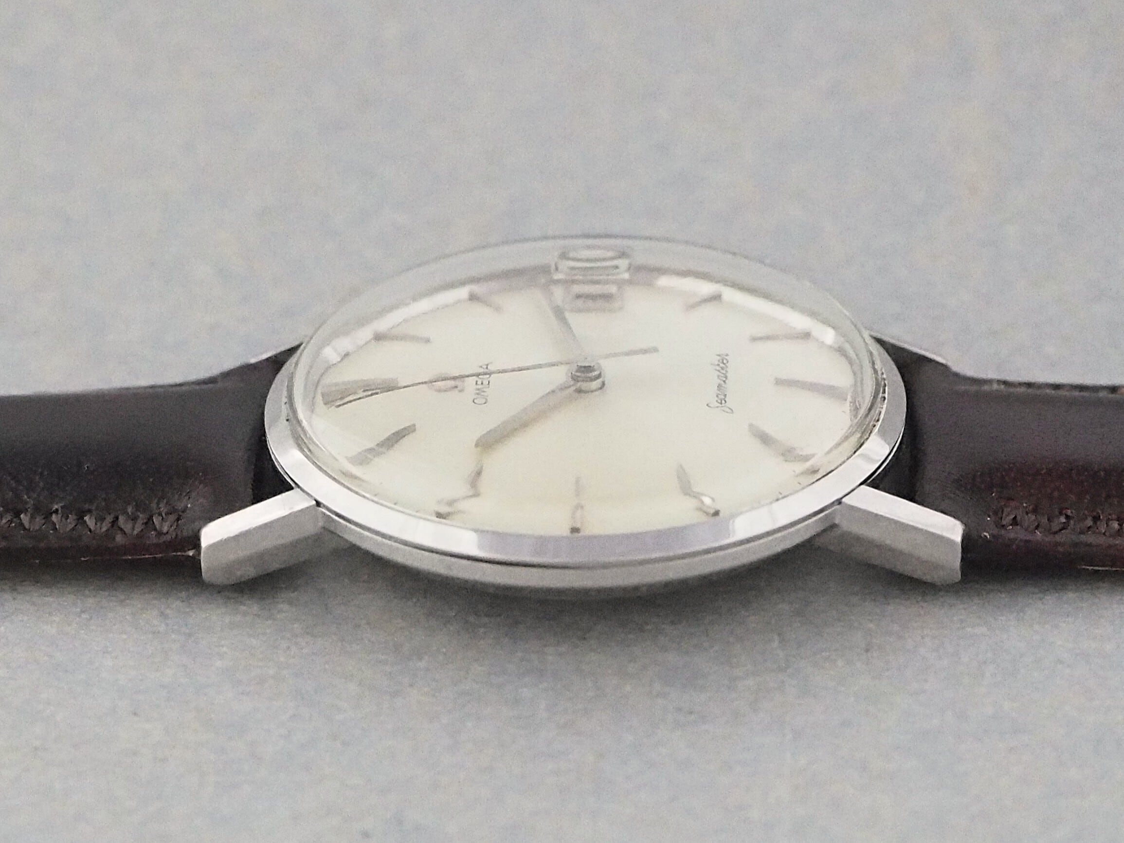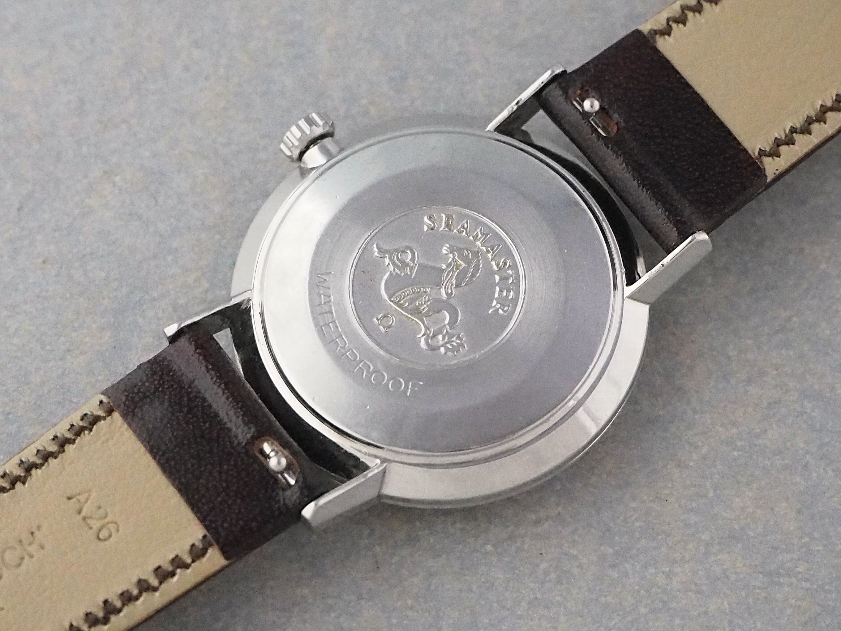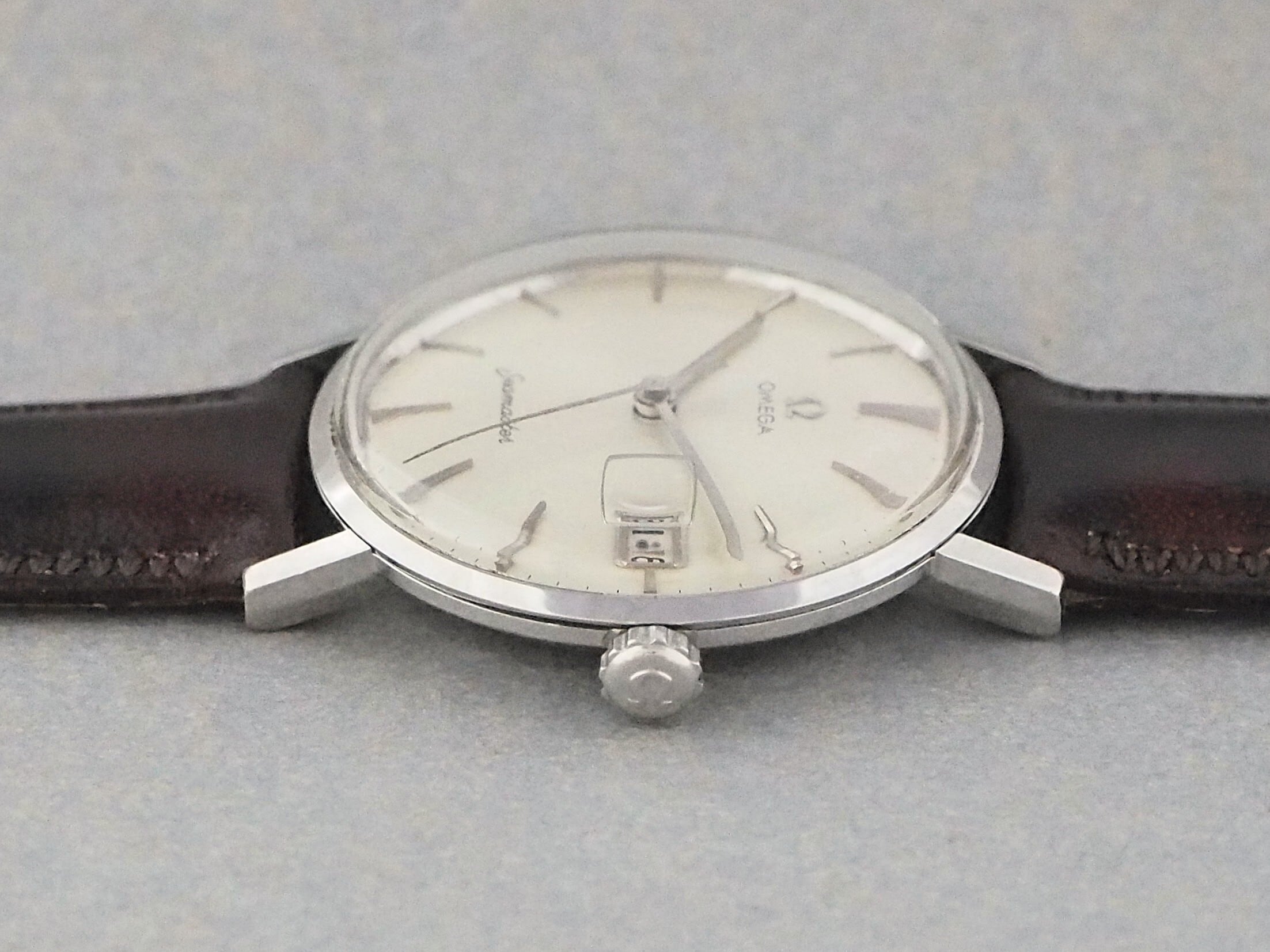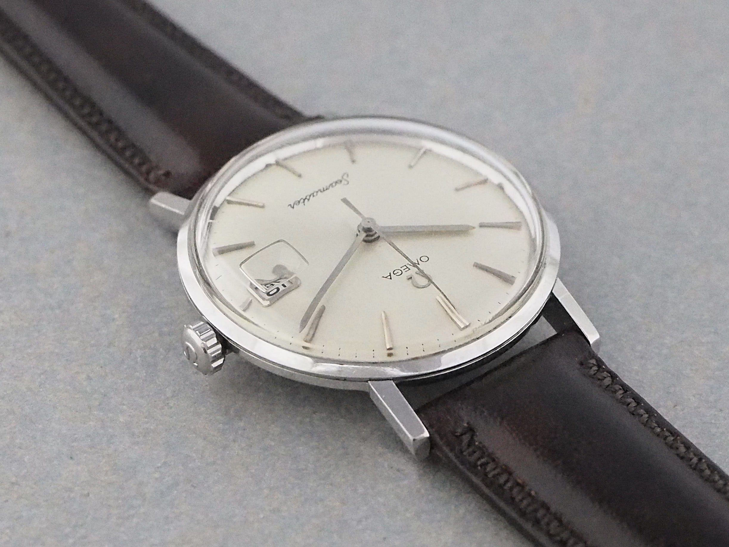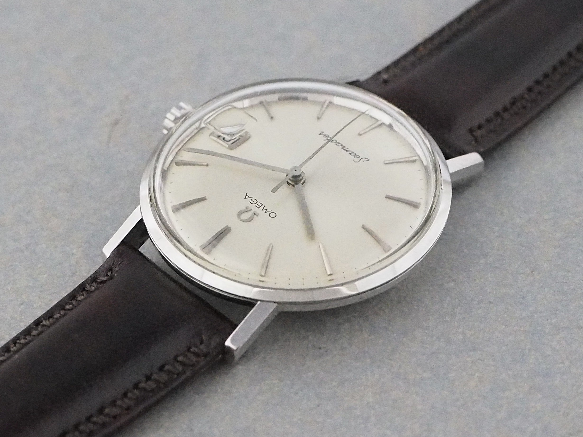 シーマスターの中でも、ドレスよりのデザインが後のDE VILLEモデルとのWネームモデルに見られるような、薄型のケースフォルムを持つモデルです。