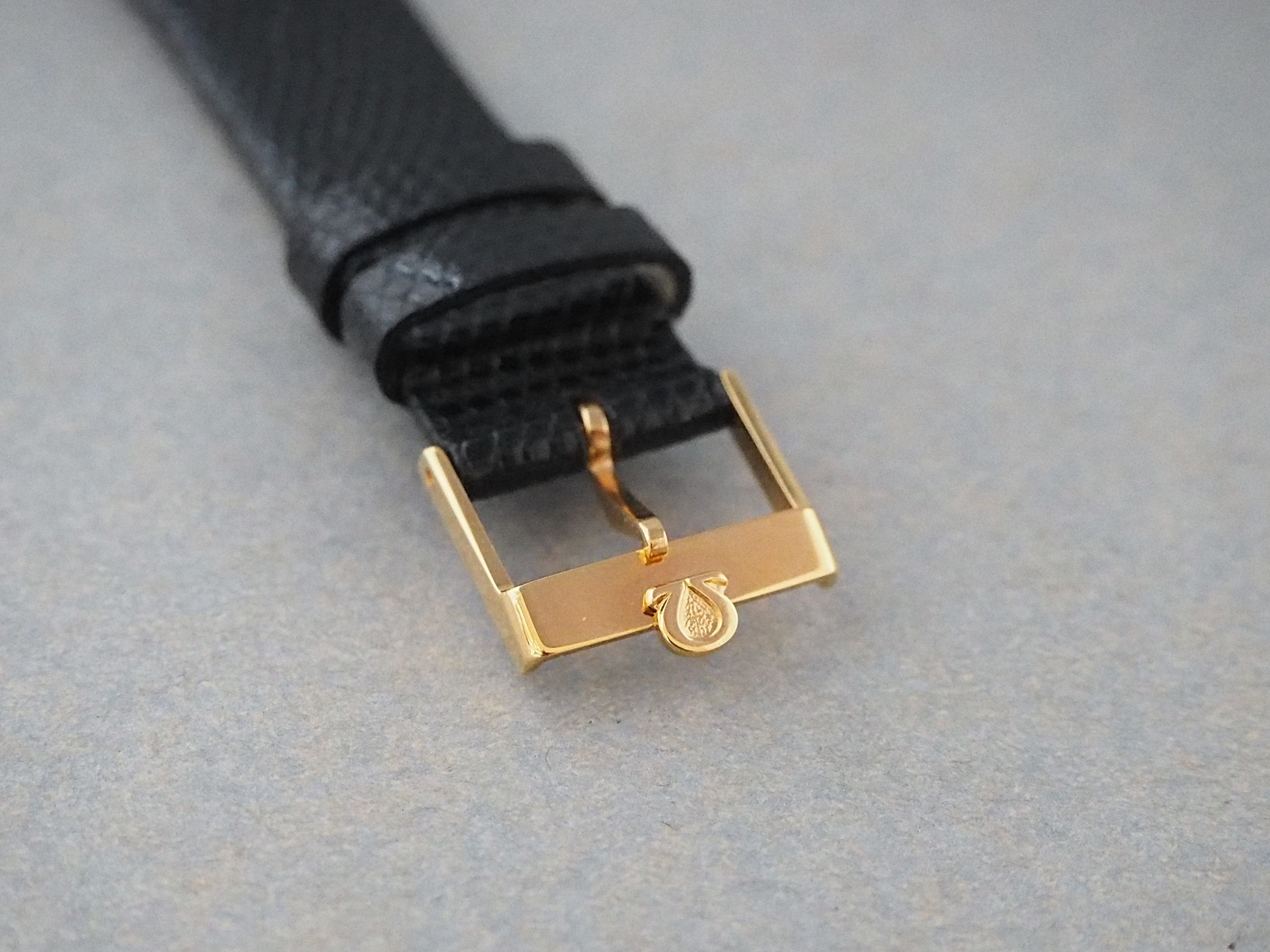 ベルトは時計のエレガントさに合わせてHIRSCH社製Lizardのブラックをあわせて、純正尾錠はこちらに取り付けています。