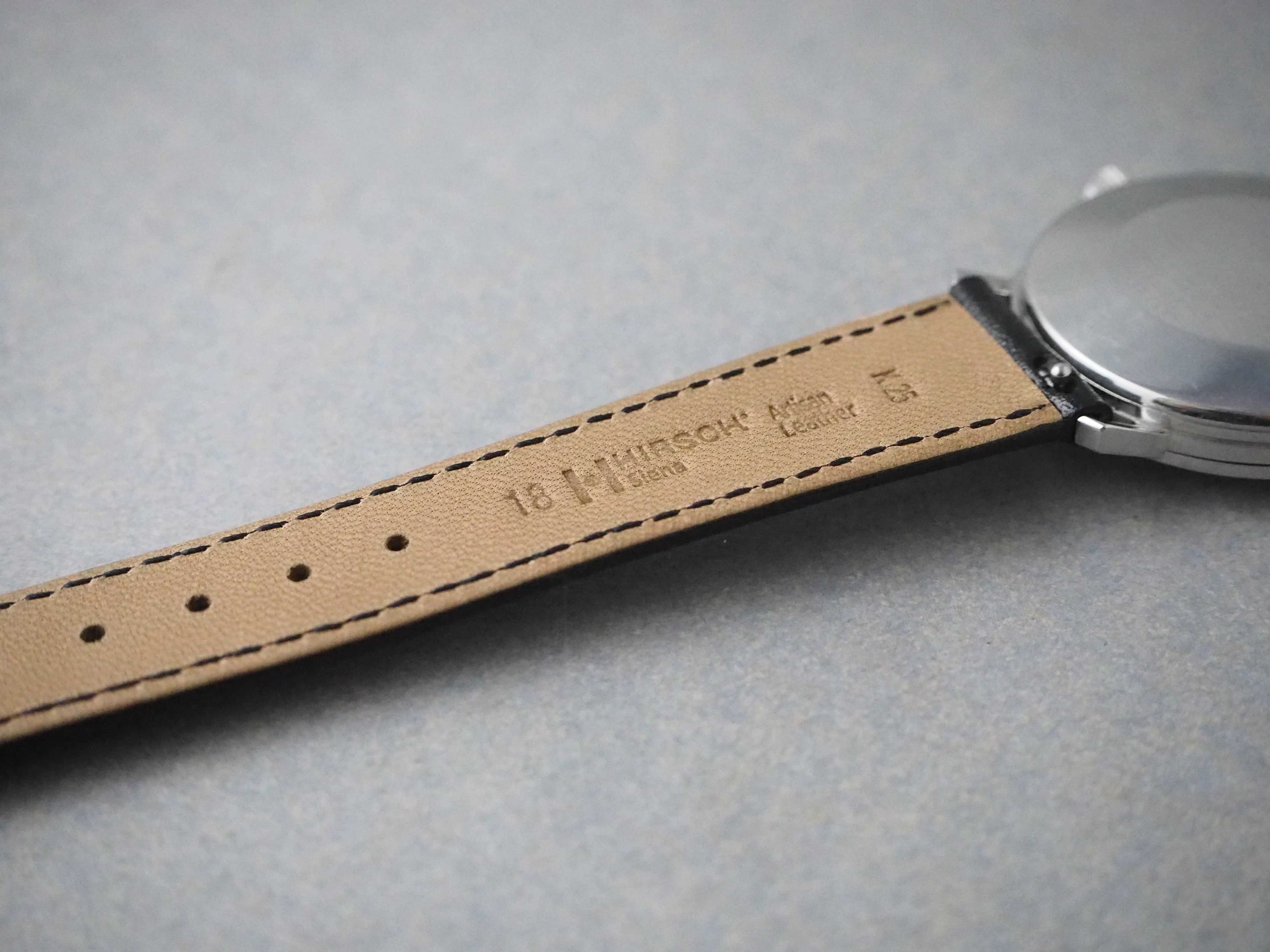 ベルトは、高級感がありつつ精悍さが時計を引き立てるHIRSCH社製Sienaのブラックを取り付けました。