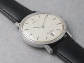 インデックスの12時位置にはブランドロゴマーク、6時位置にはカレンダーをバランスよく配置したシンメトリーなデザインで、文字盤はリネンダイヤルに光沢のある仕上げにより、さまざまな表情を見せてくれます。