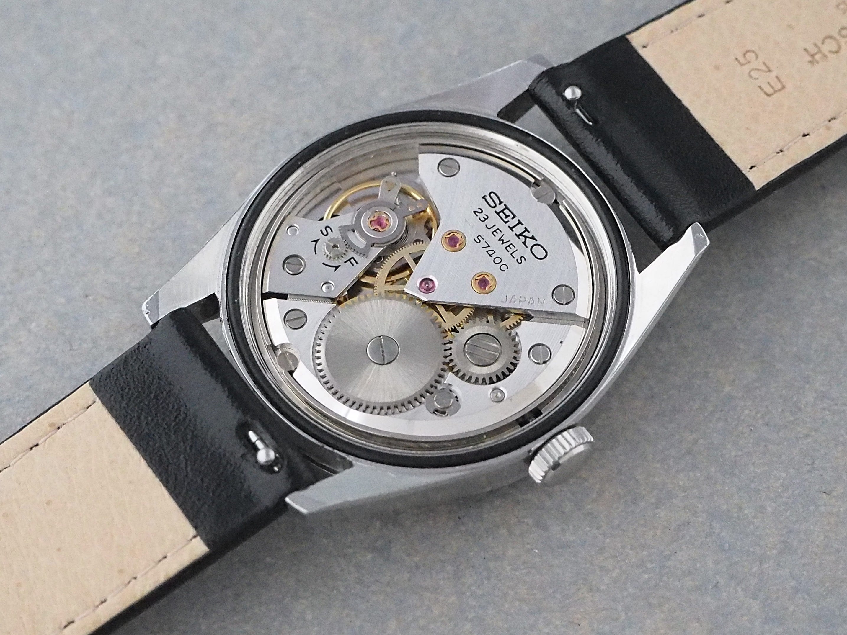 文字盤に表記されている通り、振動数は毎時36000振動のハイビートで、1967年から製造されたこのモデルは国産腕時計初の10振動(毎時36000振動)の製品です。高振動の作動に耐えられるよう堅固に設計された美しいムーブメントを搭載しています。