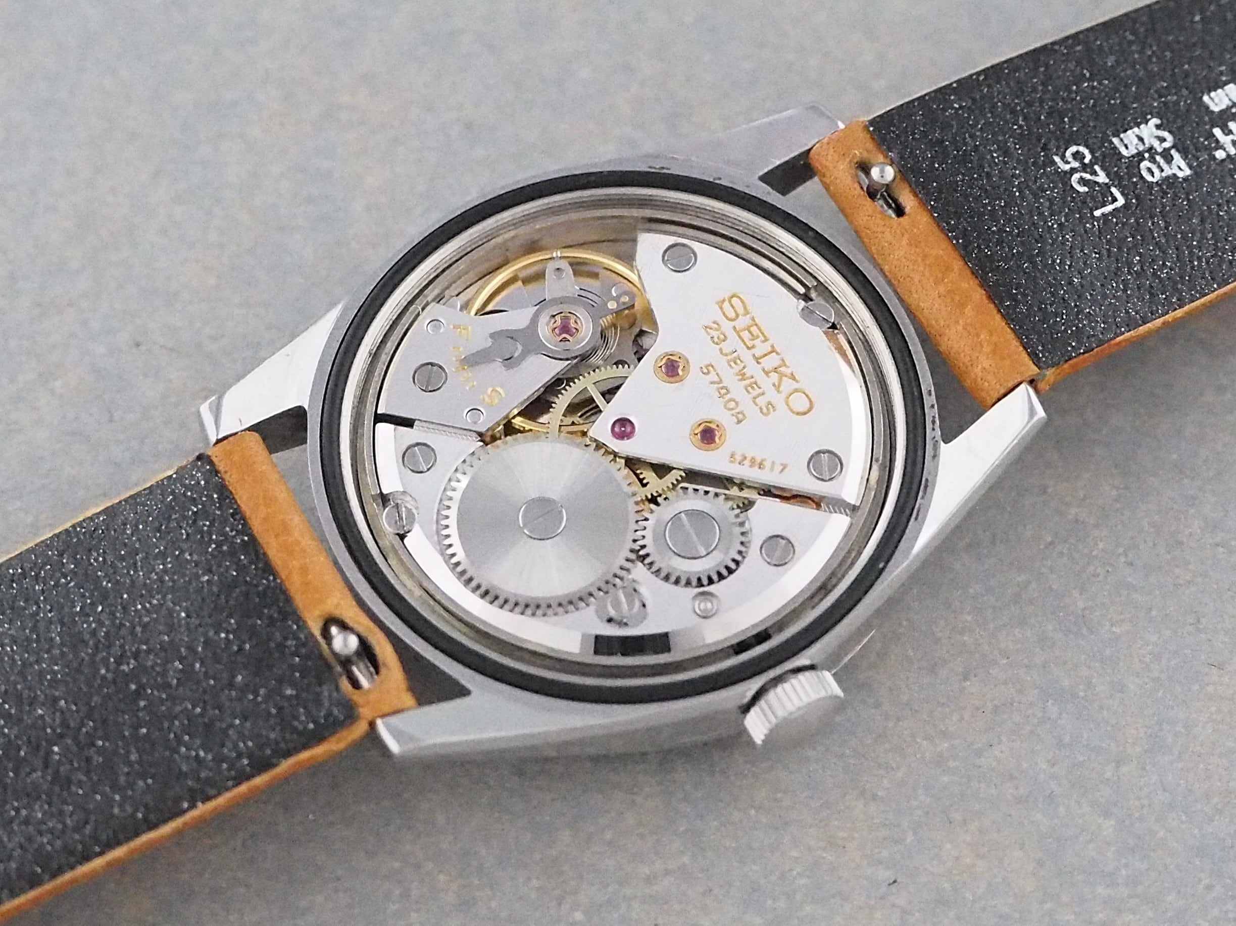 搭載される「Cal.5740B」は、秒針規制機能も備えた第二世代の5振動ムーブメント「Cal.5740A」を5.5振動化し、さらに微動緩急針を変更した機械で、後の10振動ムーブメント「5740C」へのつなぎ役を果たしたムーブメントです。