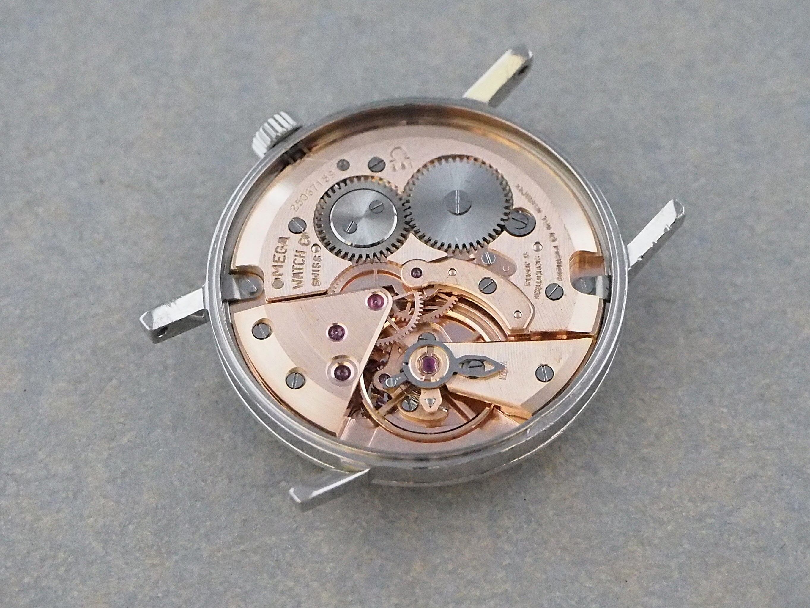 搭載するCal.601 は、オメガの傑作ムーブメント Cal.550 から自動巻き機構を外した手巻き仕様 Cal.600 の改良版です。手巻きモデルらしくケースの厚さも約8mmとスマートに仕上げられています。