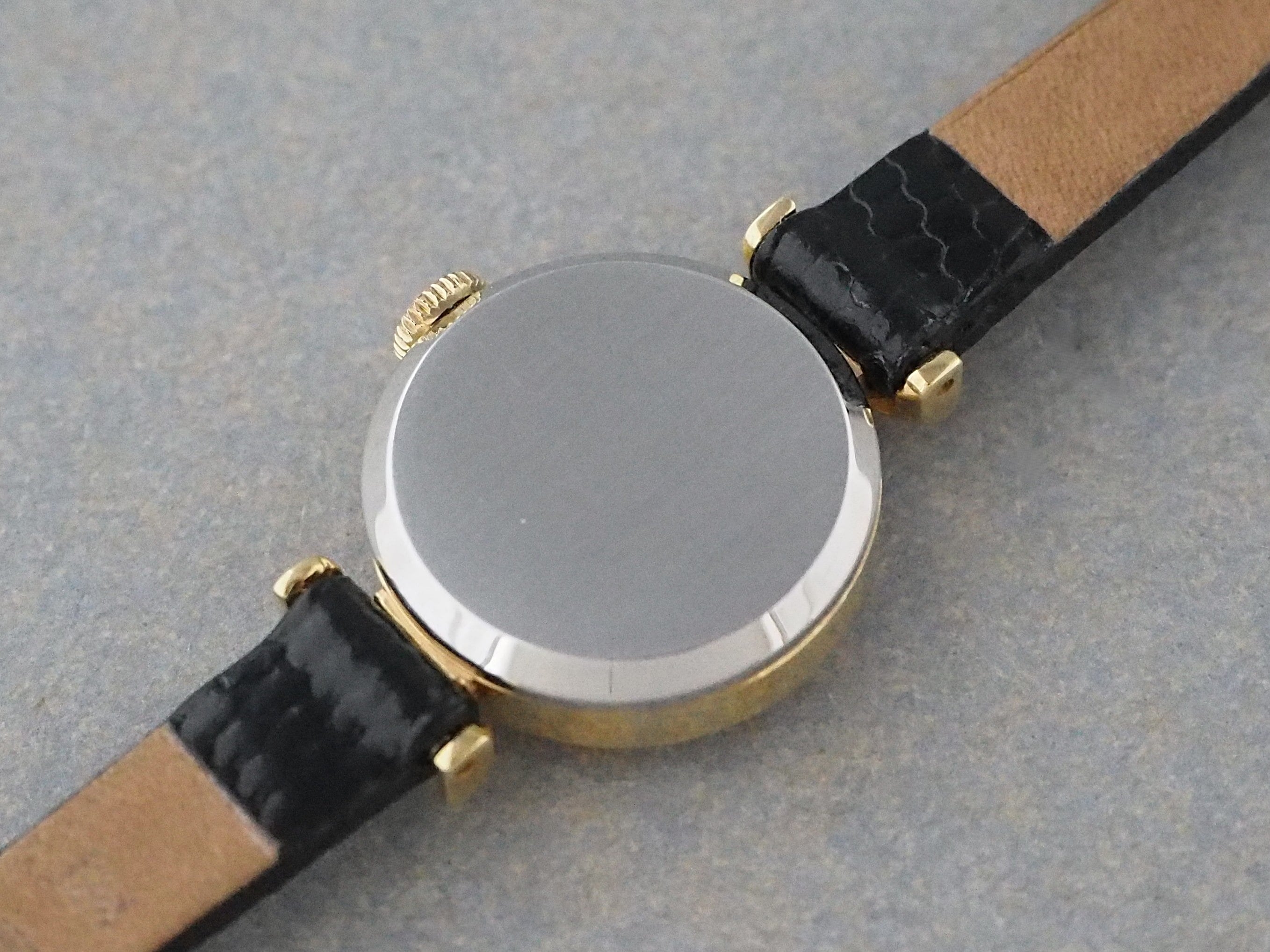 ケースサイズ20mm弱の可愛らしいサイズで、ベルトを取り付ける部分が弧を描くフーテットラグになっており、ケースサイズ20mm弱の可愛らしいサイズで、ベルトを取り付ける部分が弧を描くフーテットラグになっており、女性用の時計がドレスウォッチとしてジュエリーと同様に愛された年代ならではのアンティークな雰囲気が楽しめます。