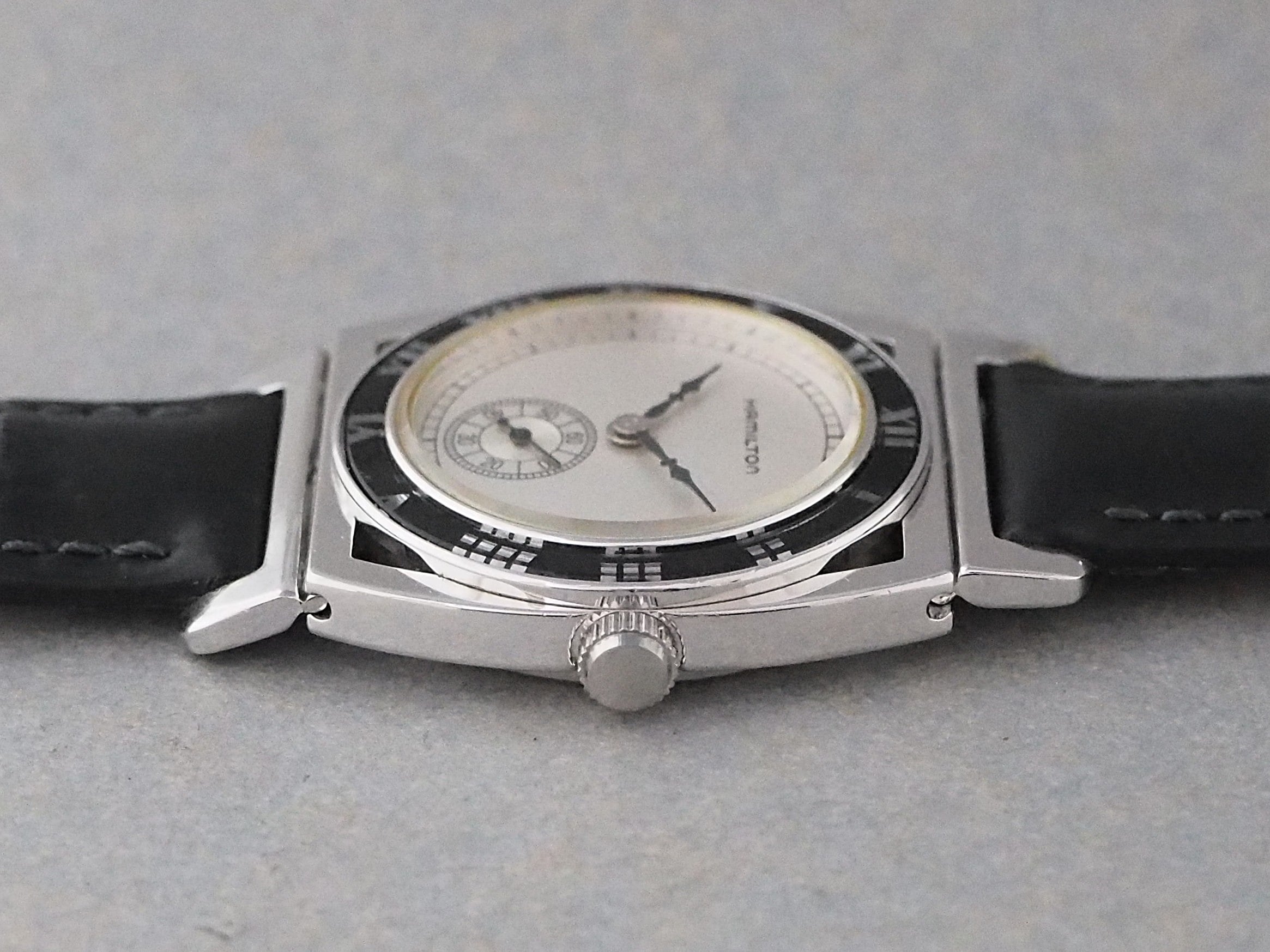 ◆1928年に登場したアールデコ調のデザインが特徴的な”HAMILTON Piping Rock(ハミルトン・パイピングロック)”の、1990年代に復刻されたモデルです。