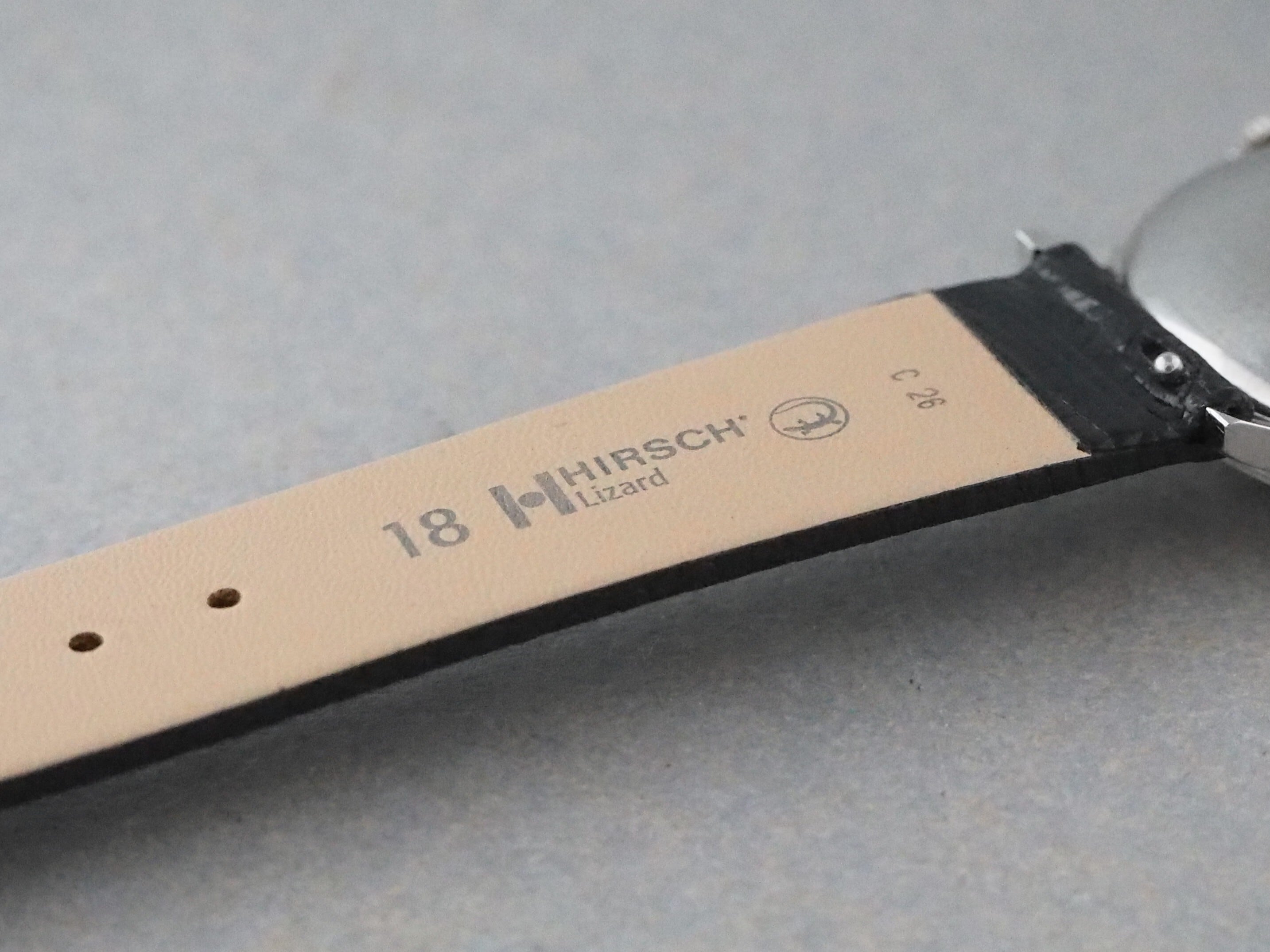 ベルトは時計のエレガントを引き立てるHIRSCH社製Lizardのブラックを取り付けました。