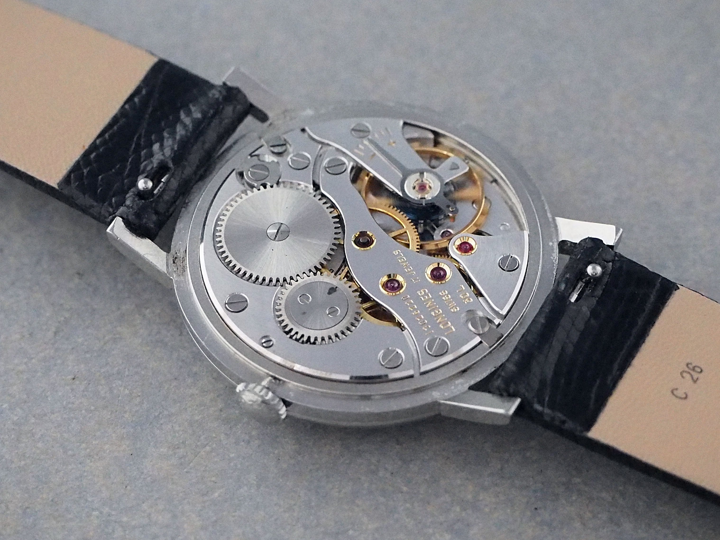 搭載する Cal.30L は、面取りなど丁寧な仕上げや、輪列の穴石にシャトン留めを採用するなど、ロンジンらしい造り込みをしっかりと受け継いでおり、センターセコンド仕様の Cal.30LS とともに、数多くの名作キャリバーを手掛けたロンジンの中でも集大成として高く評価される手巻きムーブメントです。