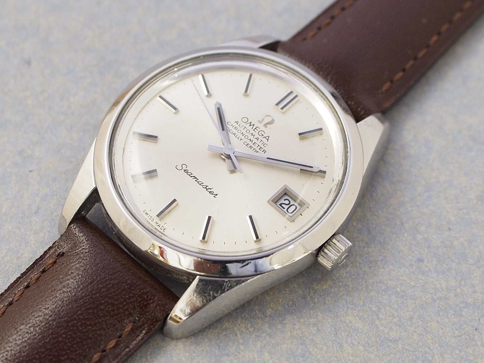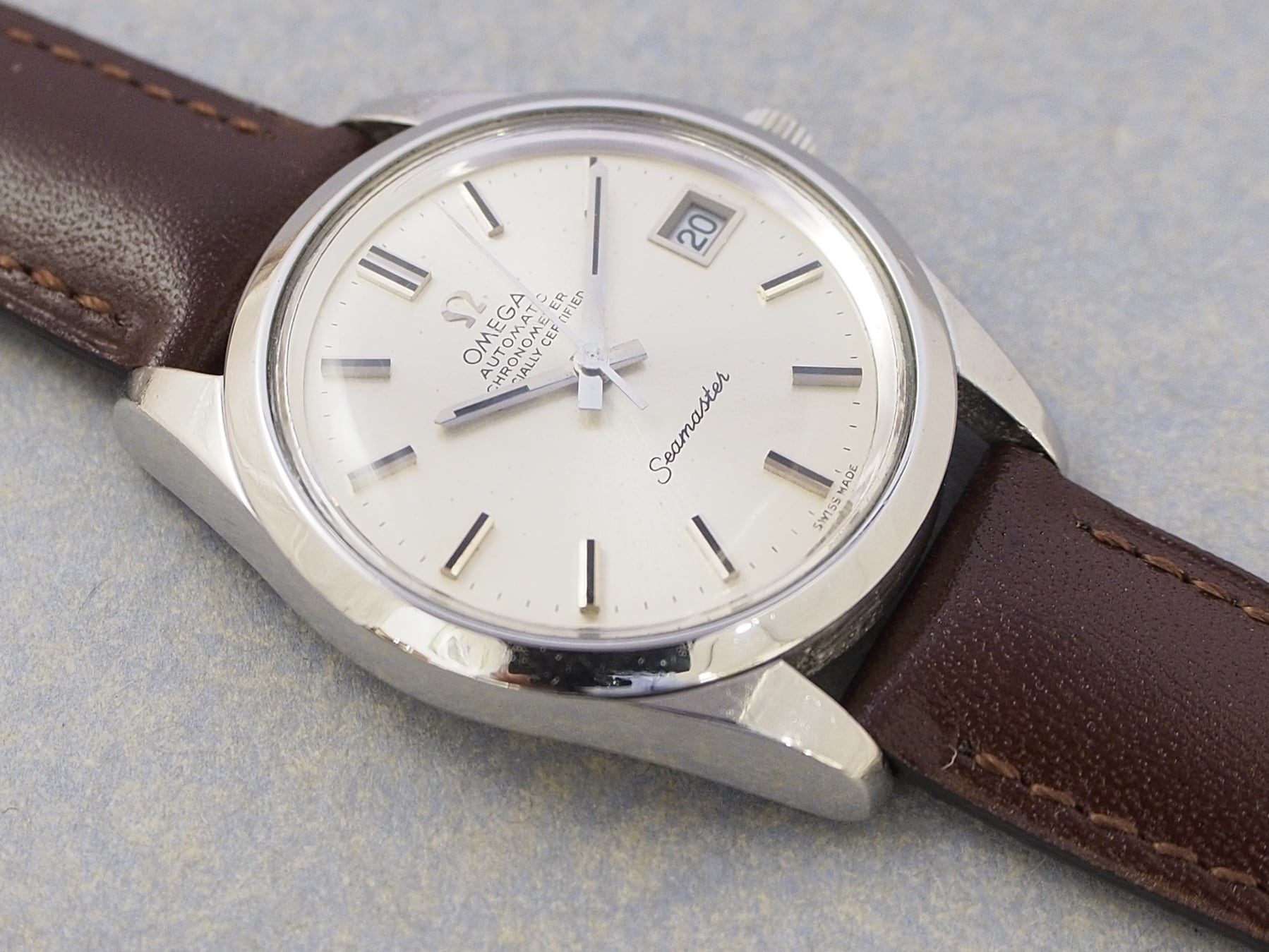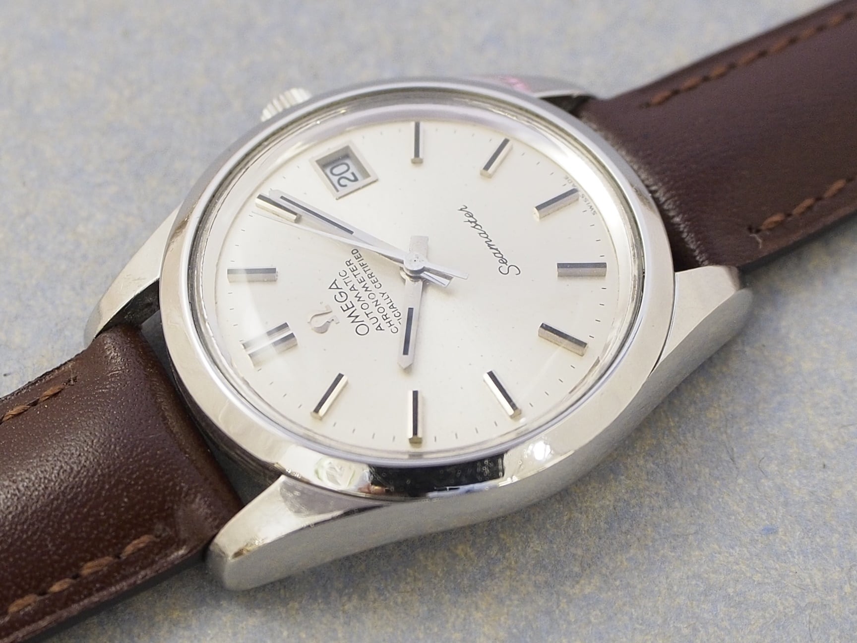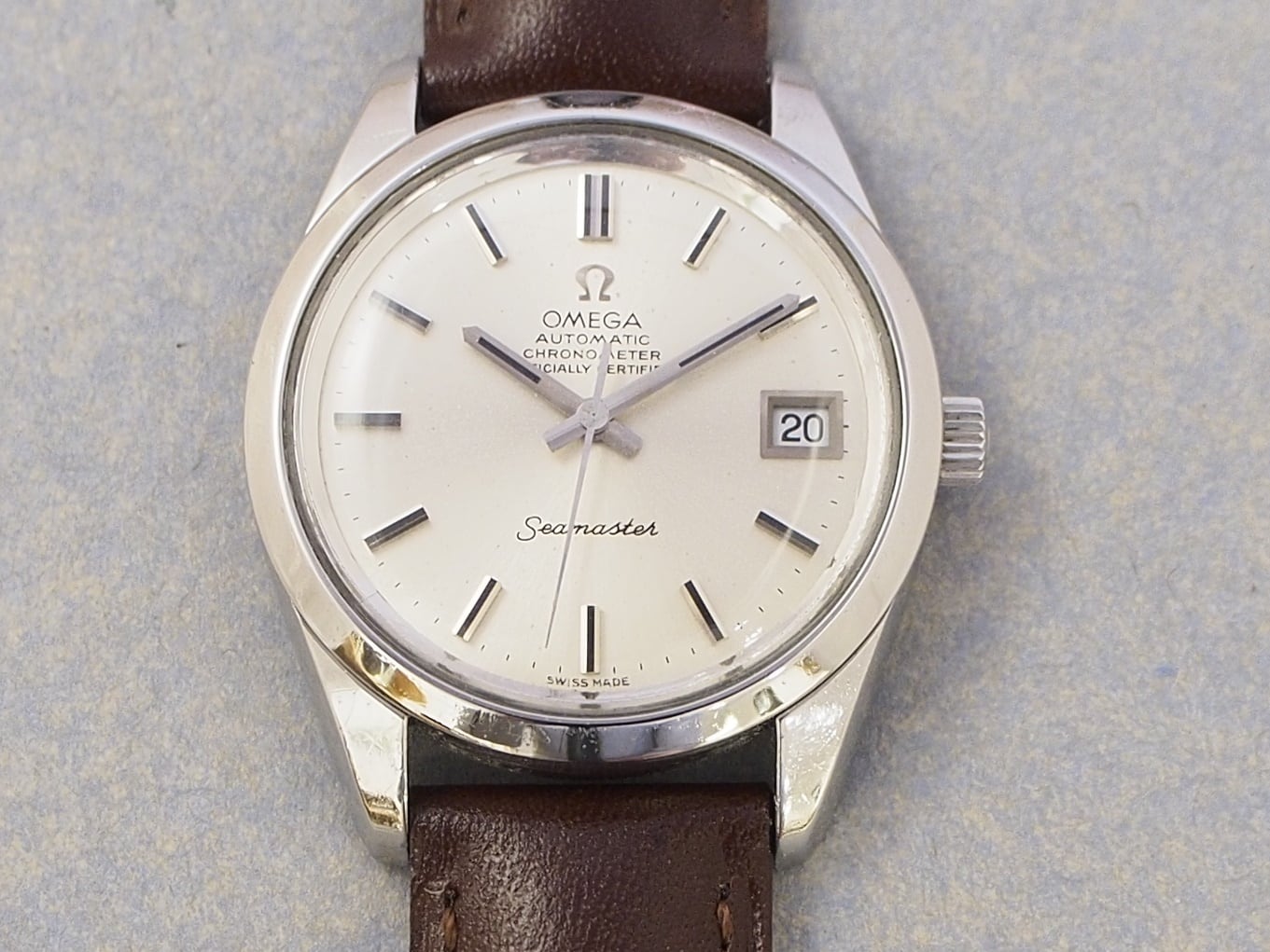それまでのシーマスター・クロノメーターのデザインを踏襲し、当時の最新ムーブメントへ切り替えたモデルです。旧タイプと違い文字盤がフラットになり高い視認性も実現し、日付表示の早送りはリューズ1段引きの操作で可能となるなど精度以外の実用性の面でも現行時計に引けを取りません。
