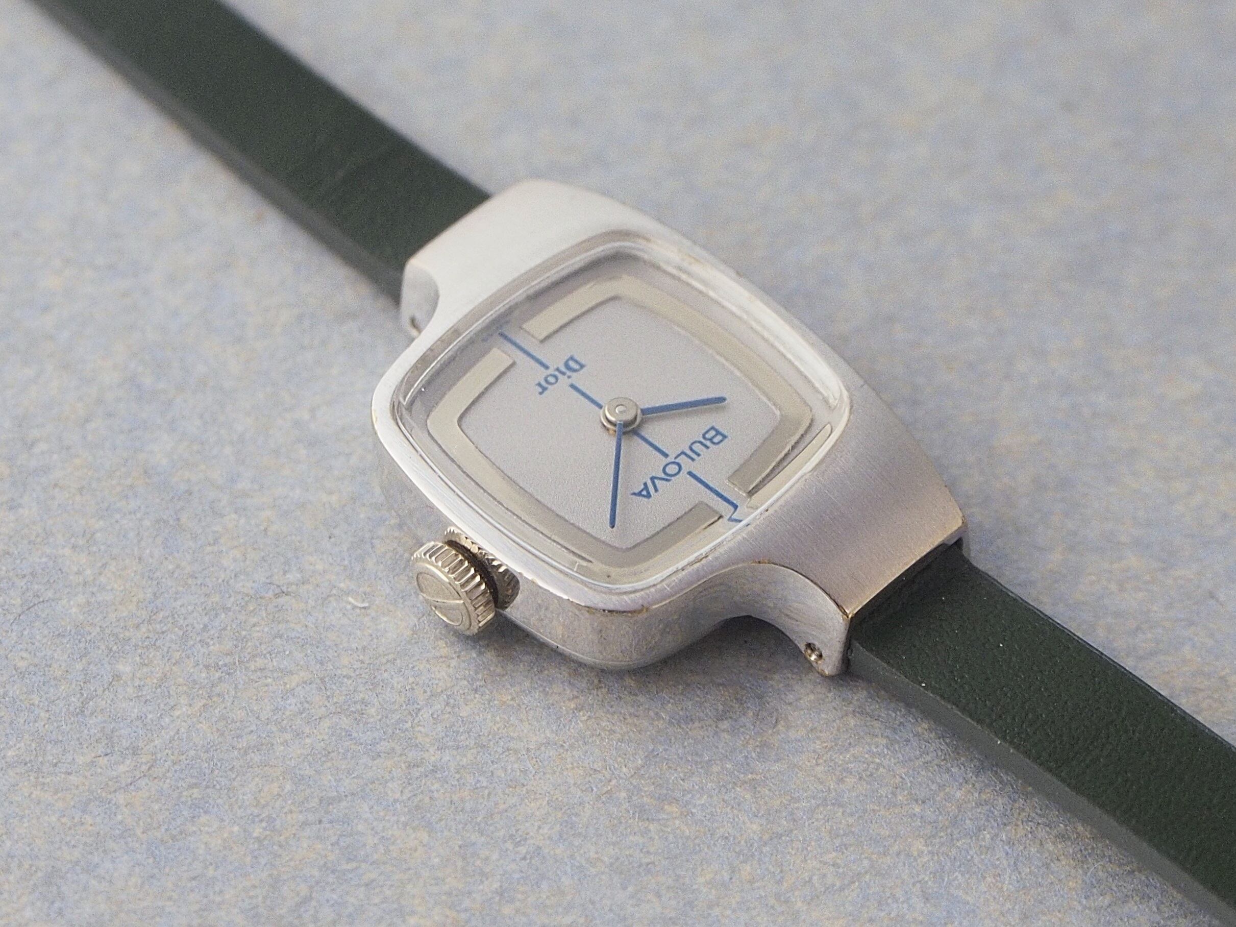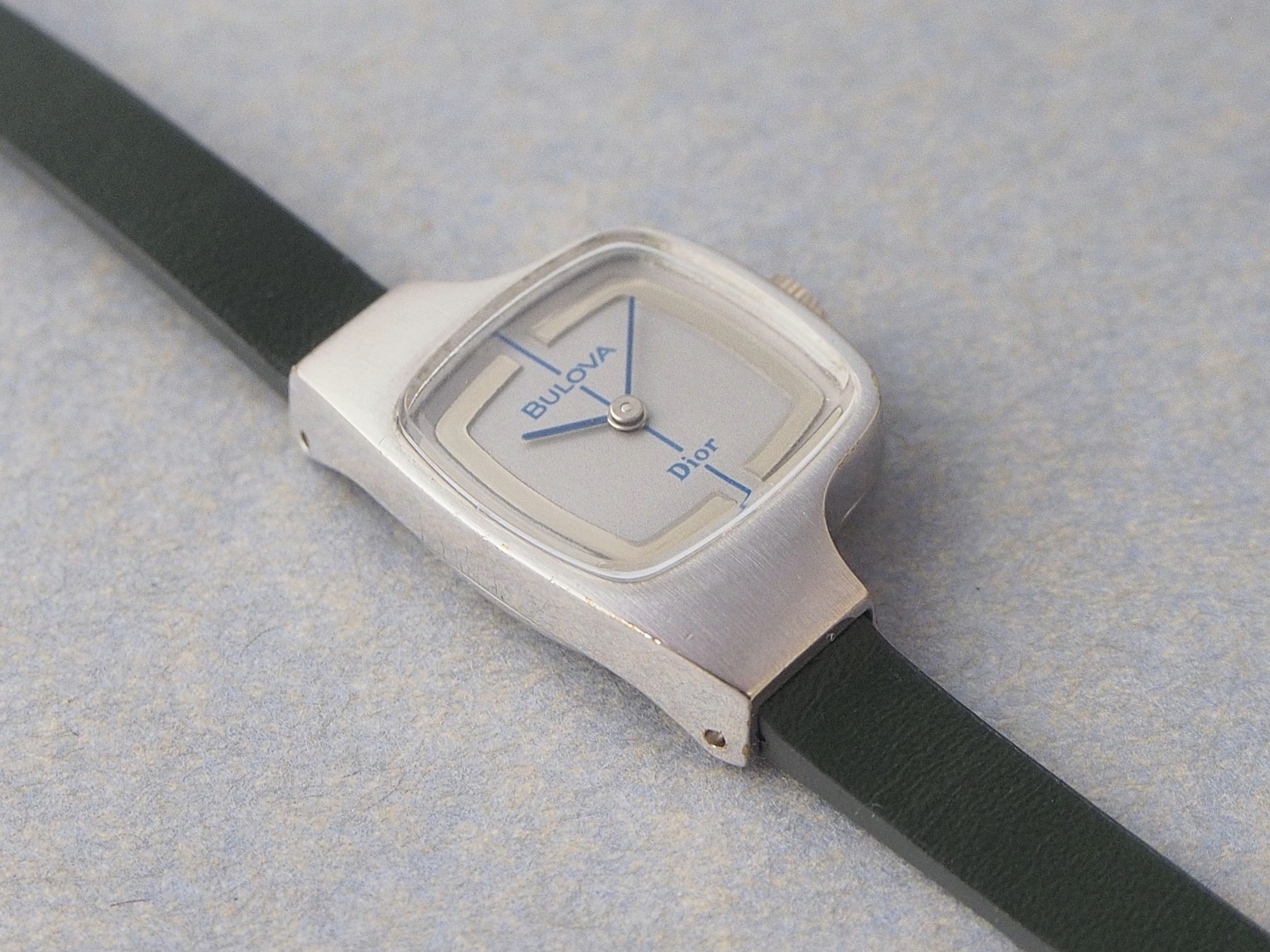 ◆1960年代後半から70年代にかけて製造販売された"BULOVA Dior(ブローバ×ディオール)"です。時計本体はアメリカの時計メーカー・ブローバが製造しデザインをクリスチャン・ディオールが担った、今でいうコラボコレクションです。