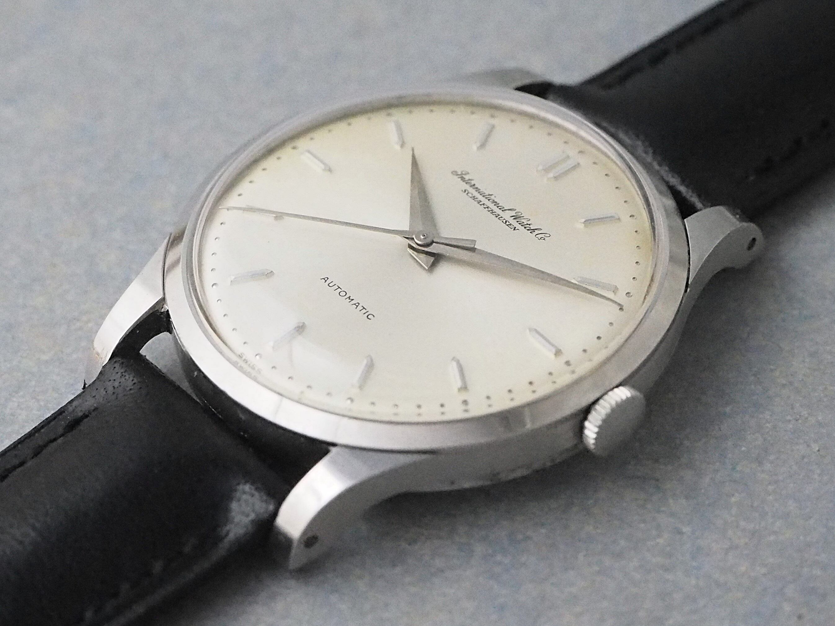 当時のIWCは、その時代の特徴を反映しつつ、60年代後半になるにつれてバーインデックスが増え、長短針も細身のペンシルハンドなど多様なバリエーションが多くみられるようになり、このようなクラシカルなフェイスは少なくなります。
