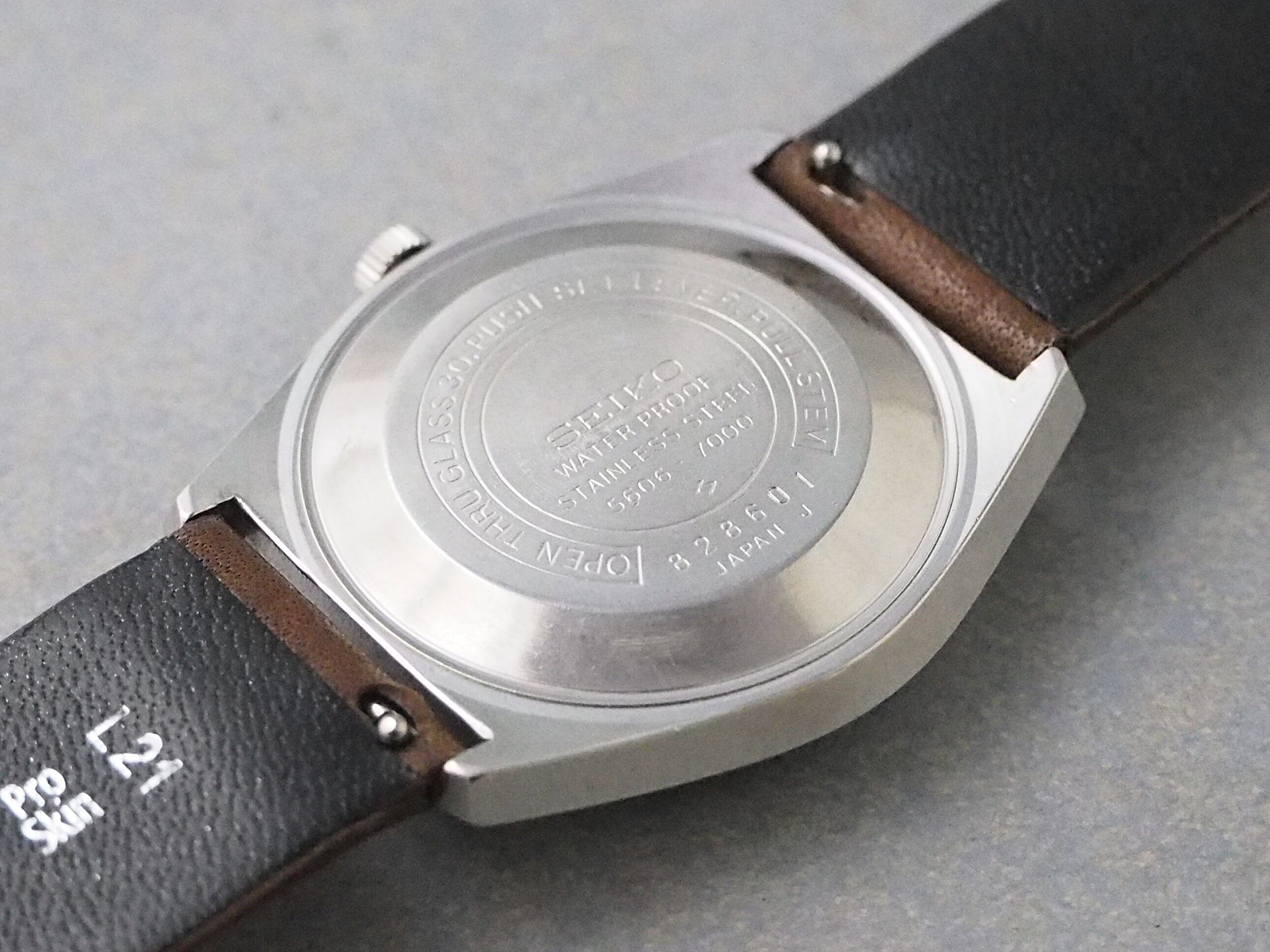 また、当時時代は腕時計に付加機能が求められつつもそれに伴う厚みと大型化が懸念されていましたが、このロードマチックに搭載された、56系と呼ばれる自動巻ムーブメントは、高いニーズのあった日付・曜日表示に、当時世界初となる早修正機能を備え、国際化の波に合わせて和文字・英文字を選択できる曜日表示を採用した、機能・性能・薄型化を十分に満たした機械です。