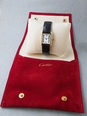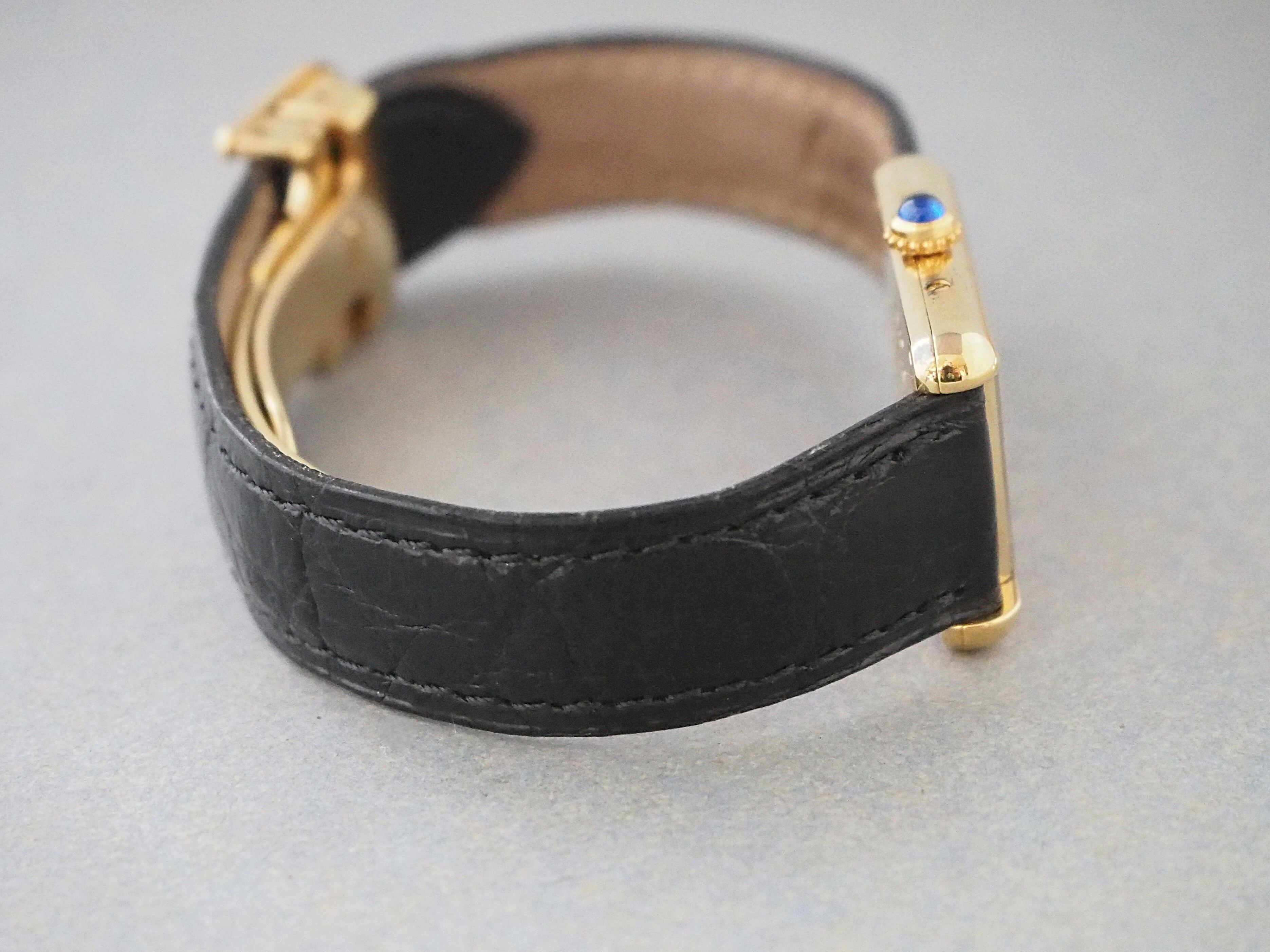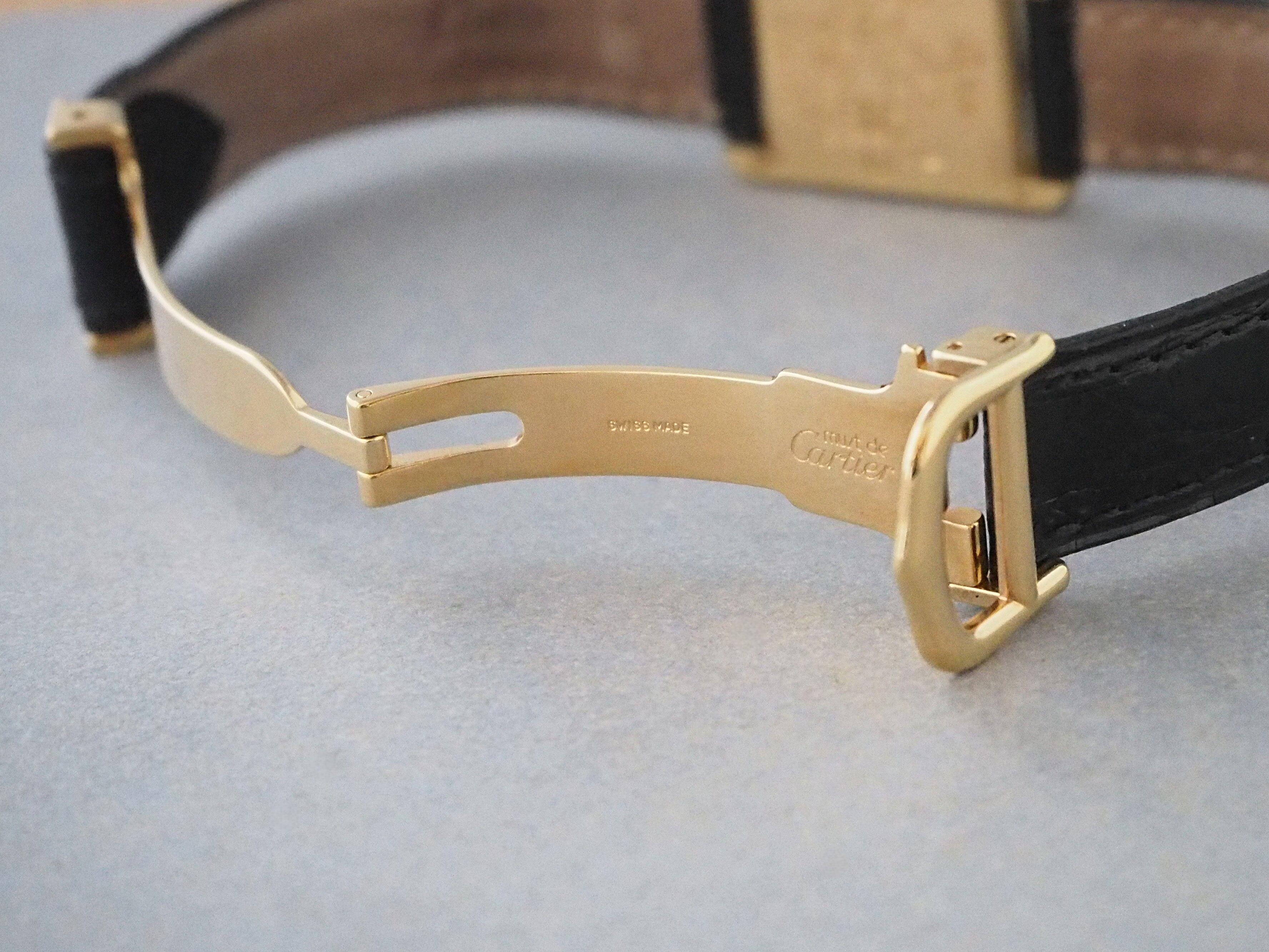 ベルトはカルティエオリジナルレザーベルトに、オリジナルバックルを使用しています。さらにカルティエの保存袋も付属します。